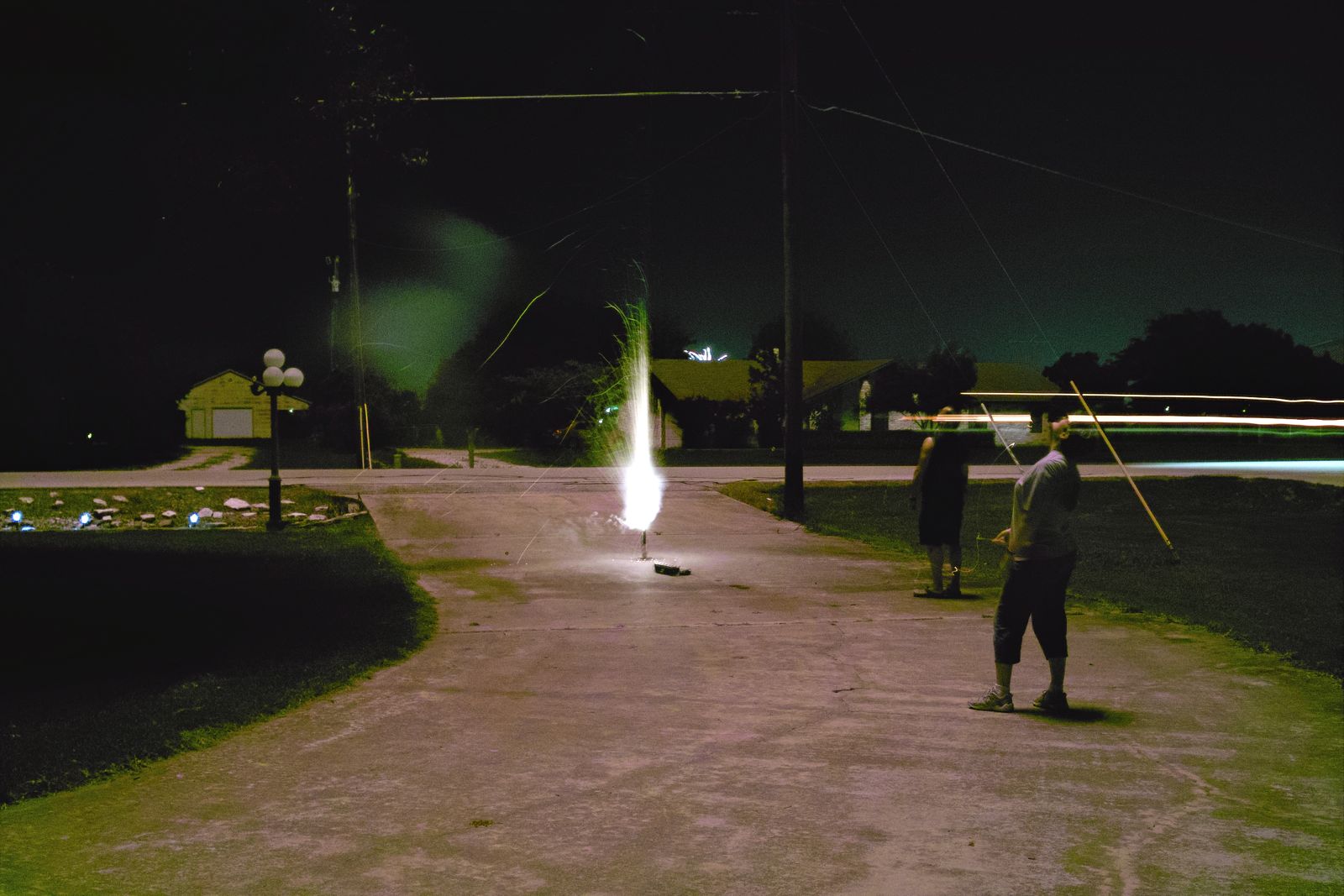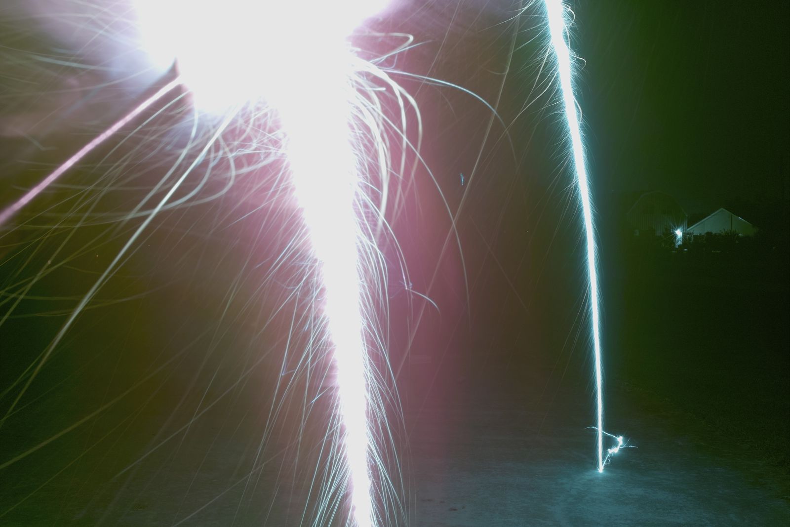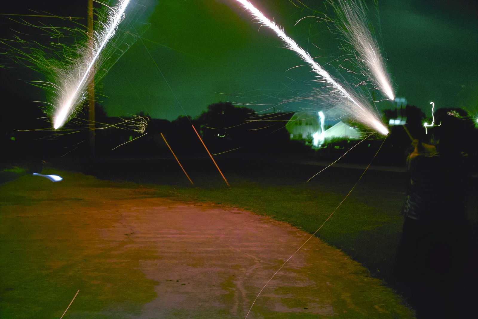 We bought some flashing fireworks that made for some interesting photos, and their next door neighbor had lots of roman candles.