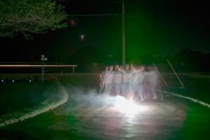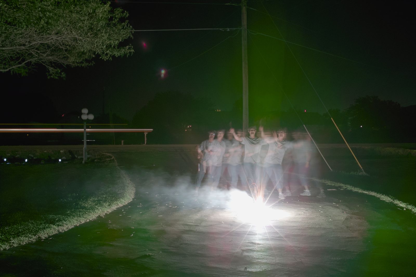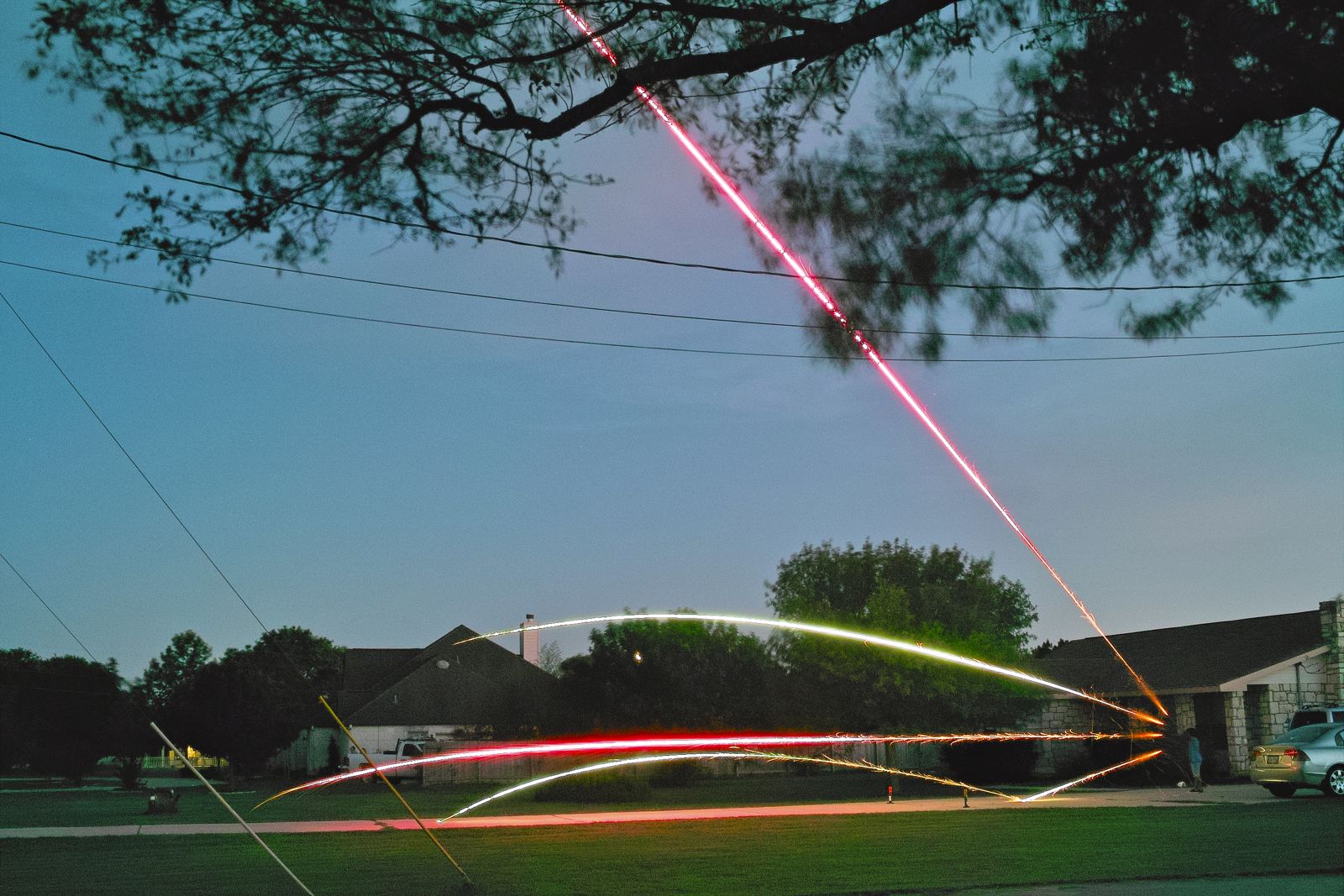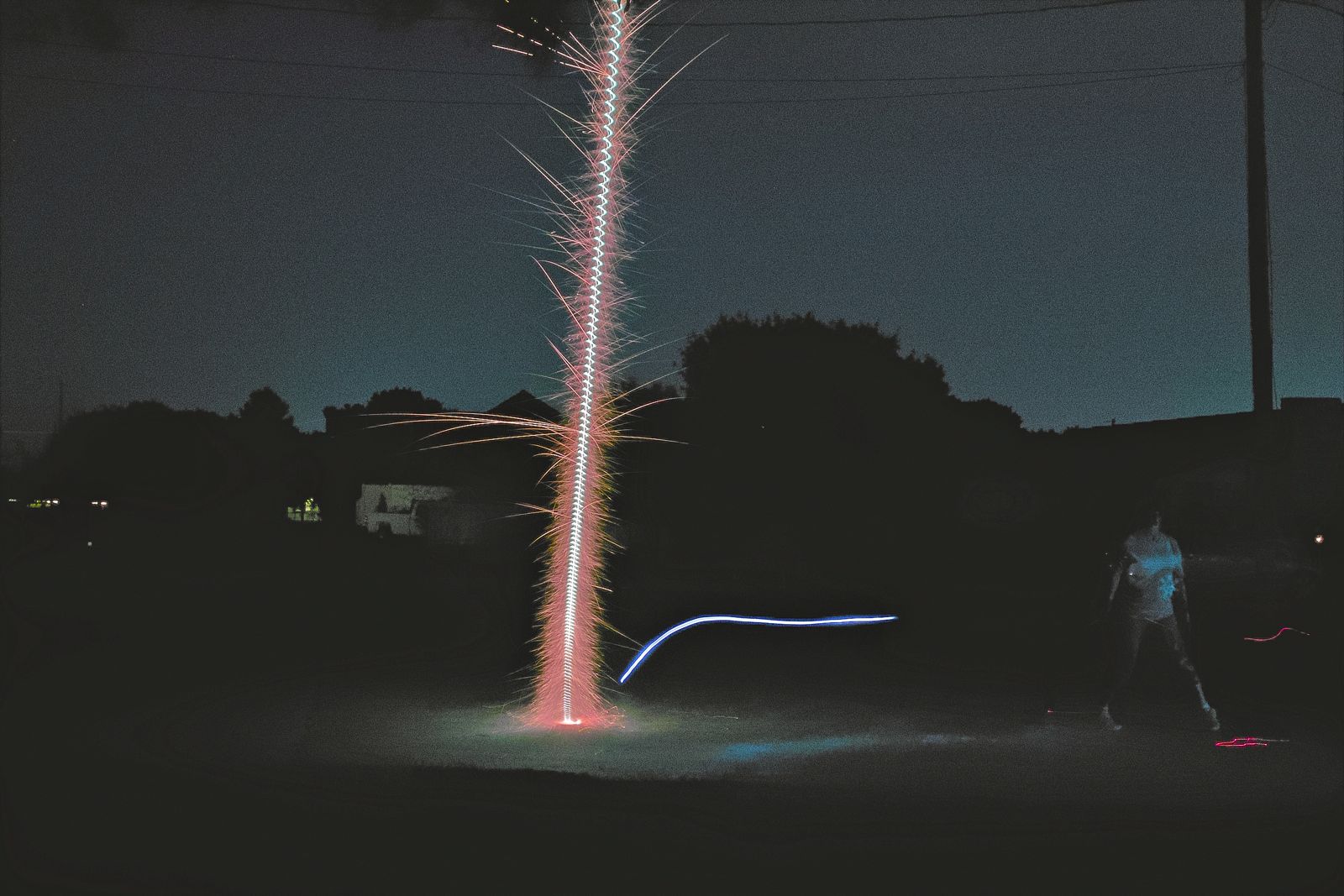 We bought some flashing fireworks that made for some interesting photos, and their next door neighbor had lots of roman candles.