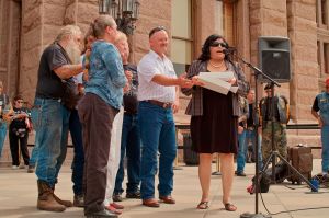 Debbie and I went to the memorial for Sputnik this morning at the State Capital in downtown Austin. We had a large number of people in attendance, probably over 1000. We also had a Norma Chavez, one of our most involved legislators in attendance. We had music and a great sermon. It was a wonderful event, with all the clubs working together, and Sputnik would have been proud to attend. Sputnik will be missed in so many ways, but we will not give up the fight to protect out freedom.