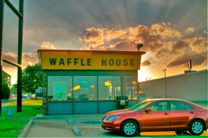 We today was mostly Turnpike, which wasn’t that good for milage, but before that it started out nice with this first shot of my tank average at 50.2 mpg. If onlly it had kept up. Next the Waffle House, not much good I can say about it, except the service was good. Unfortunately the waffles left something to be desired.