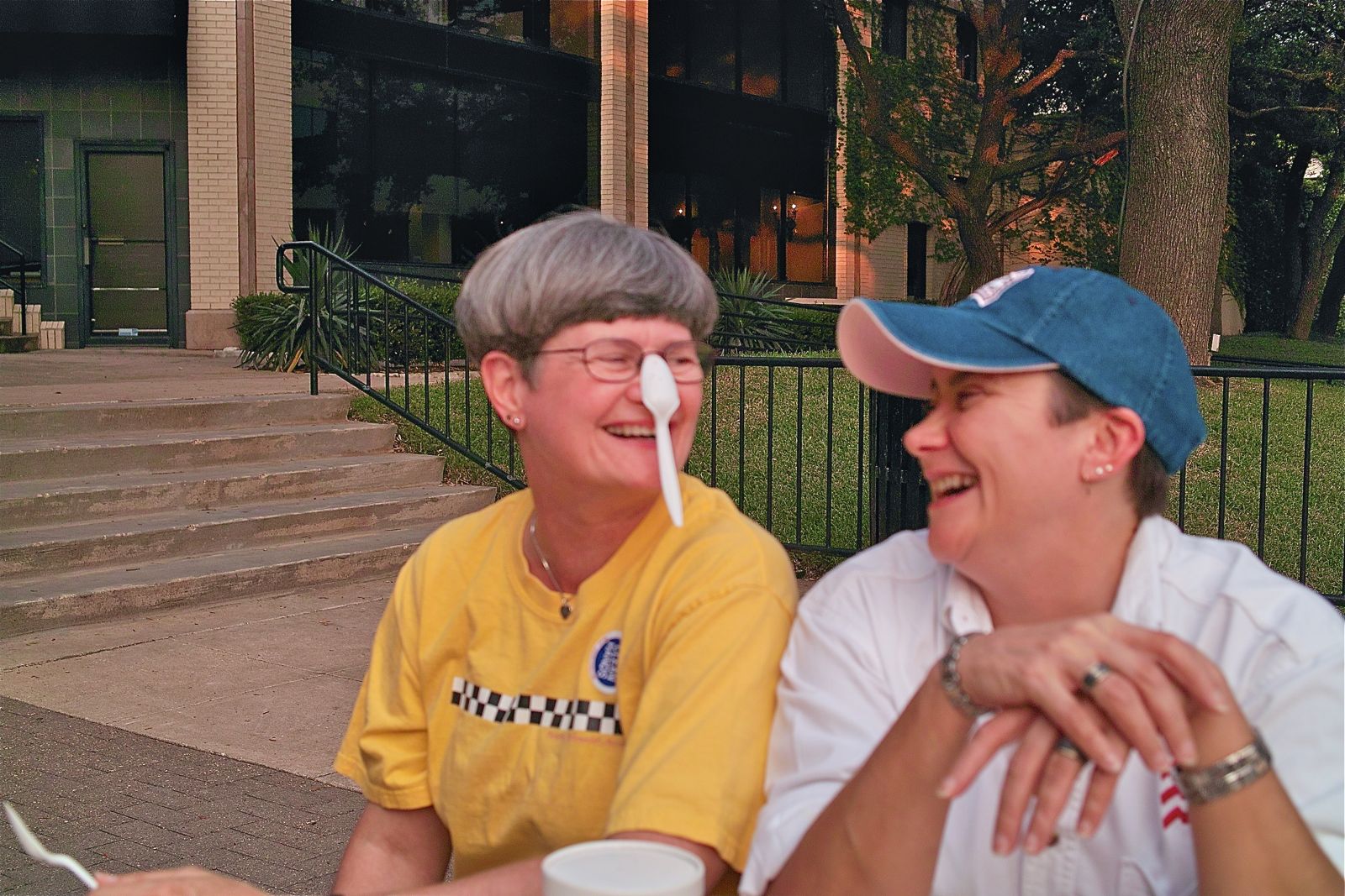 We had out chapter run this evening, starting with dinner at Rudy’s BBQ over near 183 and Duval, then we ran over to Amy’s Ice Cream Parlor for some wonderful ice cream. We ate it outside, and even the skeeters loved it and us too of course. Actually the mosquitoes weren’t toooo.. bad. But the ice cream made up for them. Then it was spoon games, which Debbie and Don clearly won. And finally stone cow games to see who could look the silliest. I think Debbie took that prize. Oh, yes, nice sunset too.