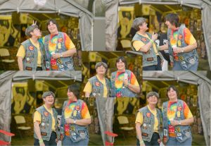 Debbie and I went to the TMRA (Texas Motorcycle Roadriders Association) State Rally in Comanche this weekend. I have a lot of photos to post, but I thought I would start with this collage of Debbie and Susan. It is special, and it is at the same time sad. Special, because they are having such a great time and you can tell, and sad because none of these photos was actually in focus. I was experimenting with an old Pentax manual focus lens, and as you might guess, I am having some real problems getting my subjects in focus. Darn these old eyes. So, even though they aren’t in focus, I had to post them, and I figued the best way was to make a collage that would convey the mood at least. So, I will try to do better, but I warn you that some of the photos coming up are not as sharp as my usual images. Anyway, much more to follow, and don’t worry, i didn’t use this lens for all of them, just some of the evening ones. As usual, click any image for a larger one.