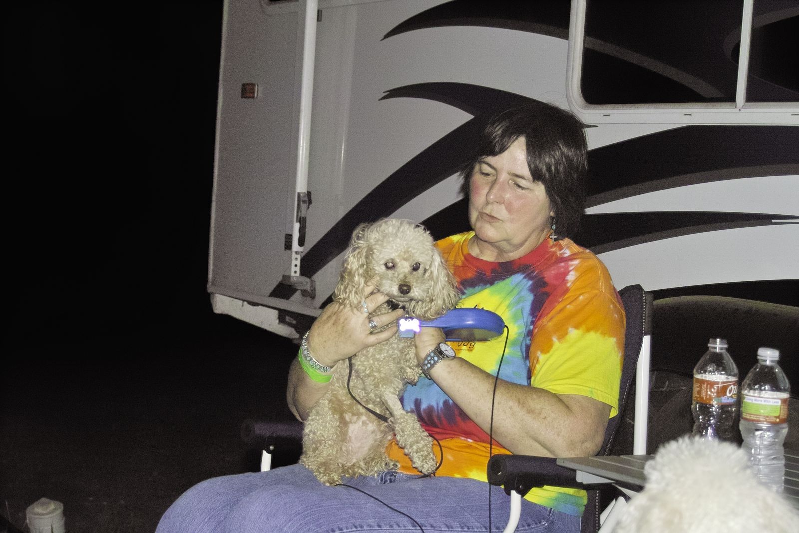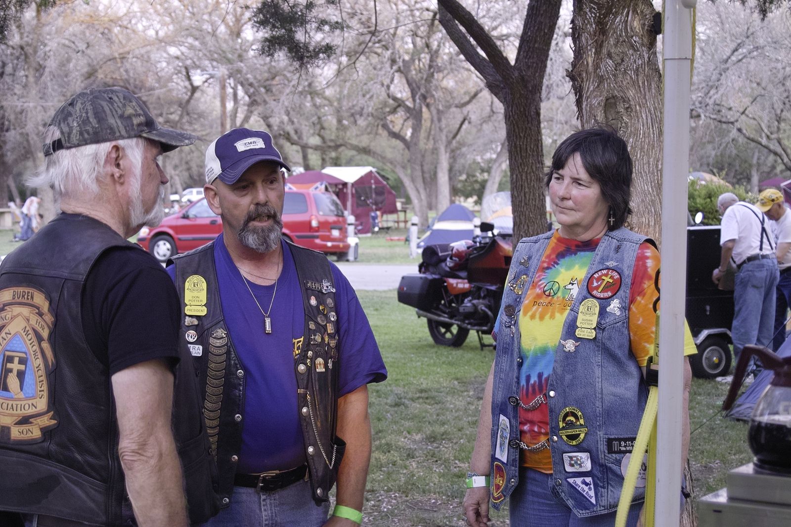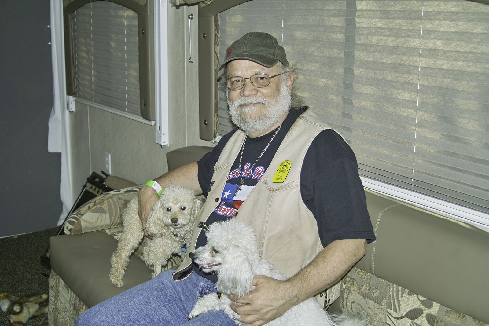 This group os from Friday, one of the road (we took the car), one at the hotel (we didn’t camp) and the remainder at the rally site. Many of the later ones were taken with the manual focus lens. As you can see, I was doing a bit better, but still not great. Early in the group, you get to see Don and Susan’s new bike. can you say Orange? And, I bet you never thought you would see me posing with dogs, but there it is. By the way, I am using smaller thumbnail images to get more on the page, but you can still click any image for a larger version. Enjoy! – next up Saturday, including the bike games. Woo Hoo! –