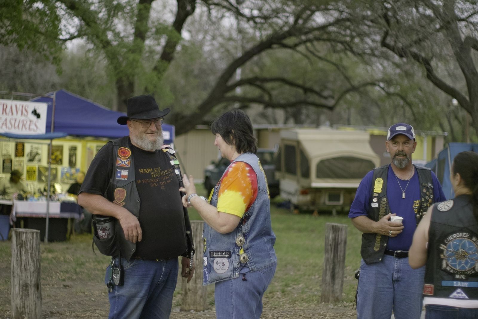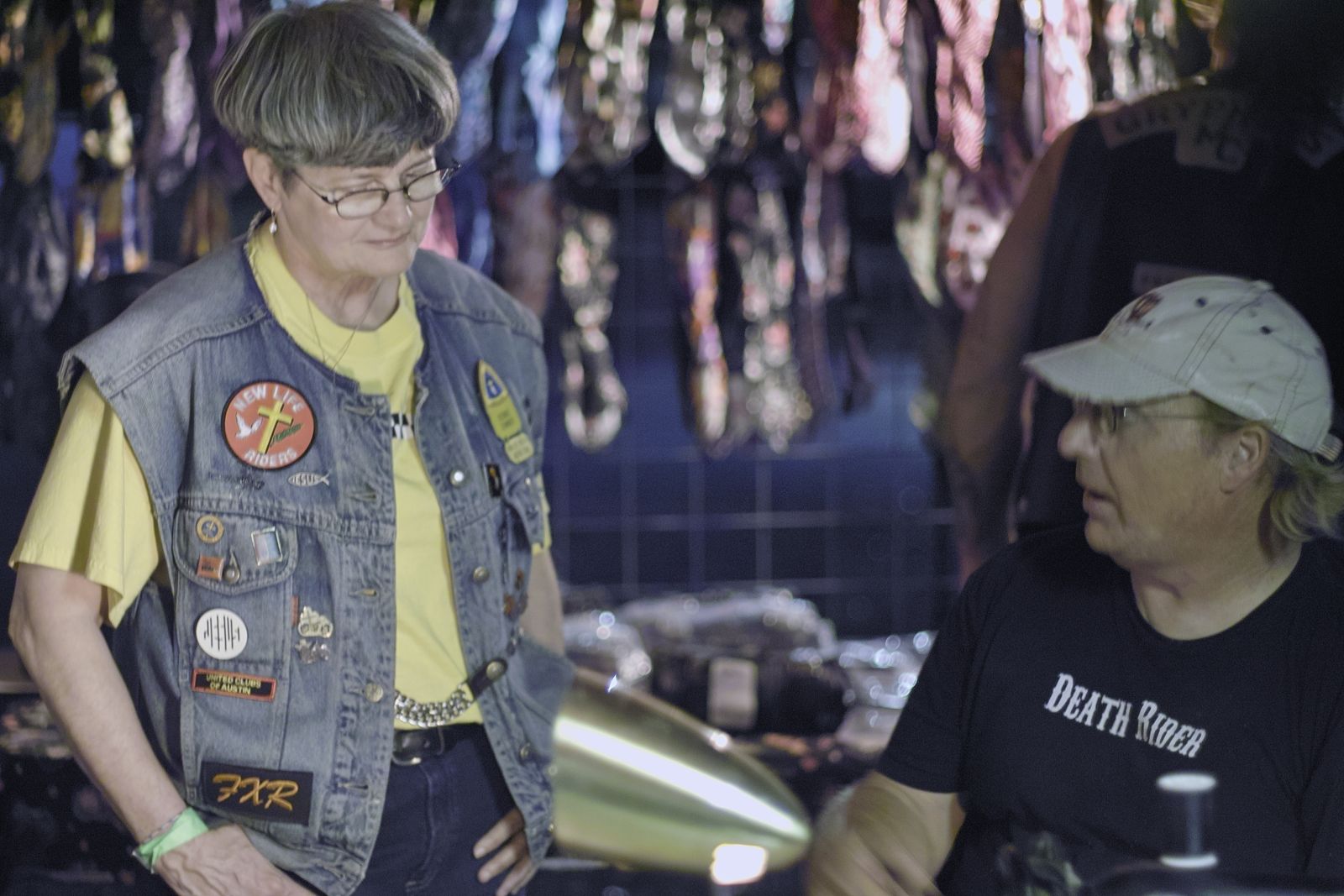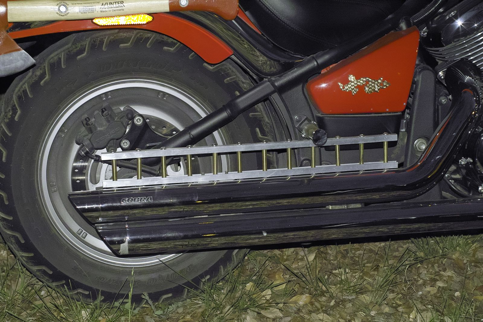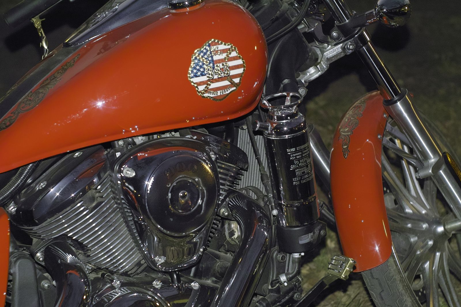 This group os from Friday, one of the road (we took the car), one at the hotel (we didn’t camp) and the remainder at the rally site. Many of the later ones were taken with the manual focus lens. As you can see, I was doing a bit better, but still not great. Early in the group, you get to see Don and Susan’s new bike. can you say Orange? And, I bet you never thought you would see me posing with dogs, but there it is. By the way, I am using smaller thumbnail images to get more on the page, but you can still click any image for a larger version. Enjoy! – next up Saturday, including the bike games. Woo Hoo! –