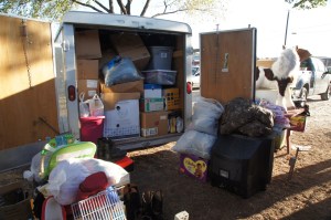 Second stop was at the Roadhouse. UCOA and COC&I was collecting household good for the Bastrop fire victims. I think we needed a bigger trailer!