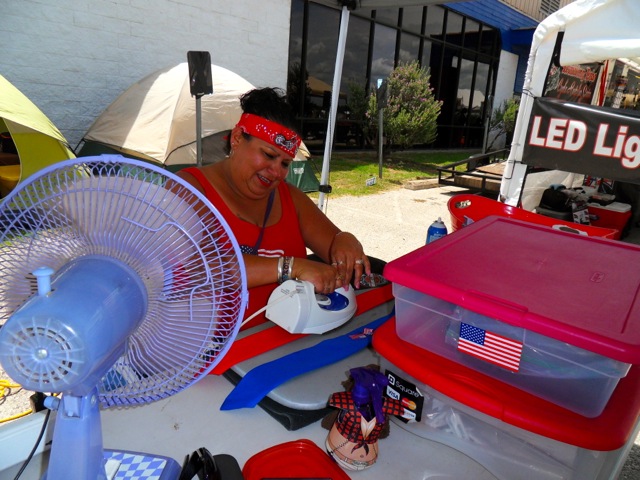 Got to talk with Shy Girl, one of our friends from of Cascabella MC. She had a booth right across the way from our Hospitality Tent, selling hand made head bands.