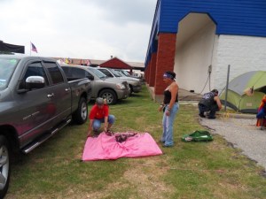 Debbie helped our lady friends of Cascabelas MC, put up this really tiny tent. She had a great time.
