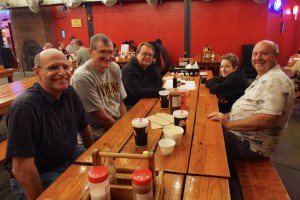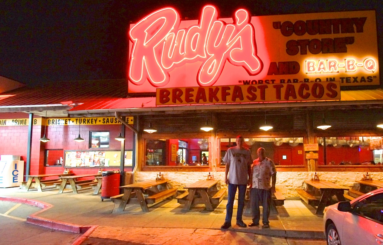 While the women were having their Victorian Tea, some of us guys went to Rudy’s for, as the sign says, the “Worst BAR-B-Q in Texas. Tom and Carol are down visiting from Wyoming, so Tom joined us. We were also please to have Alex join us. Go Alex!