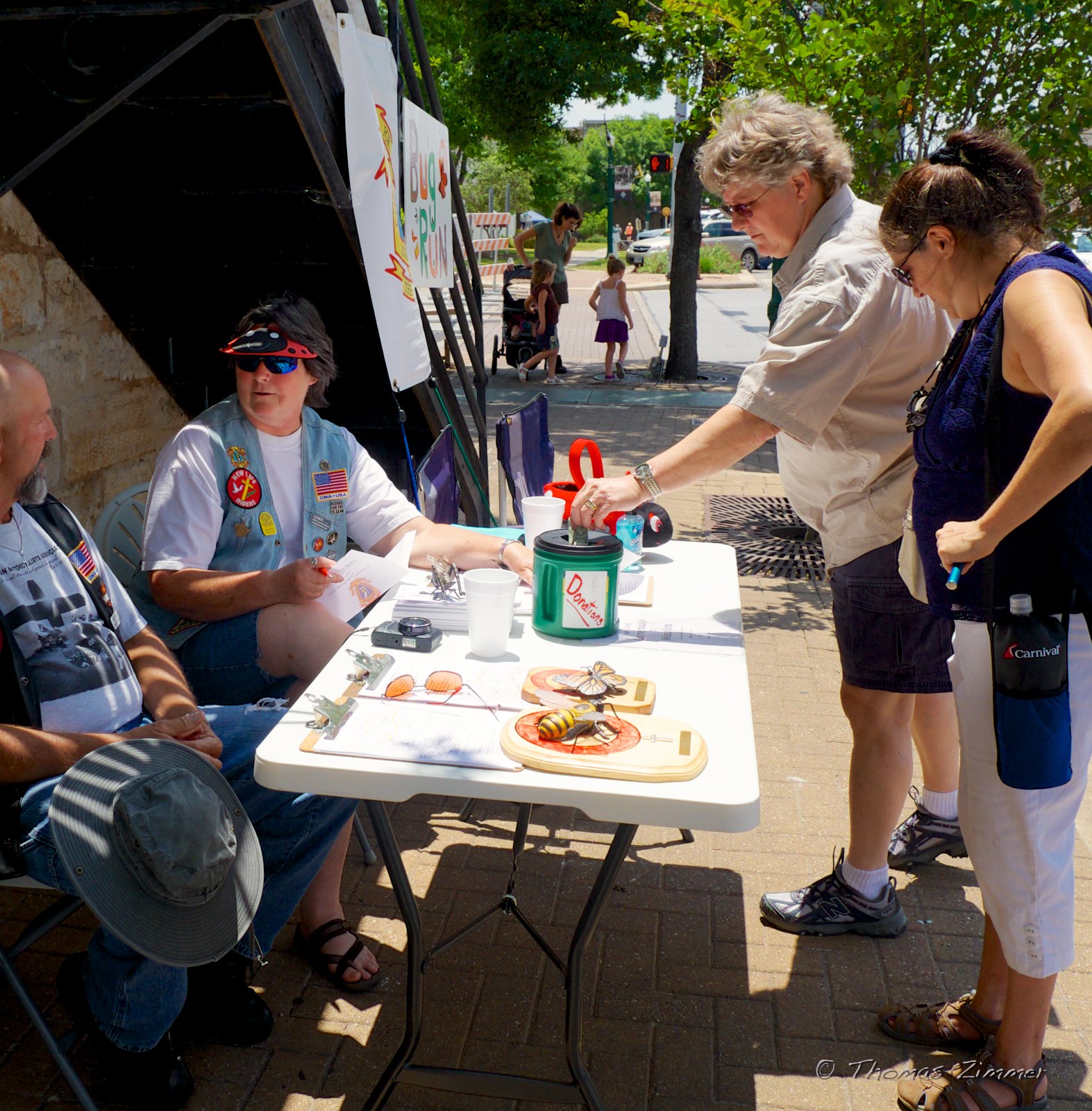 We had out second annual Bug Run today up in Georgetown at University Burger. The Bug Run is out event to help in raising funds for the CMA Run For THe Son missions. The Turnout was pretty good, I think we had 15 to 20 participants, though the bugs they brought back were very tiny. We did manage to get a winner though, a brand new rider Bharak was invited by one of our members and he managed to get a bug only 1/4 inch from the center of the bullseye. Good work! The burgers at Burger University were wonderful, and they were even donating back 10% of their receipts from Bug Run participants meals tickets to Run For The Son. Thank you Burger University! Ok, without further delay, here are the photos.