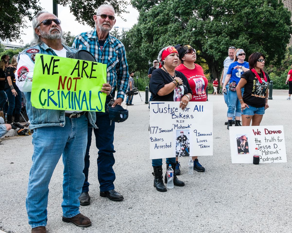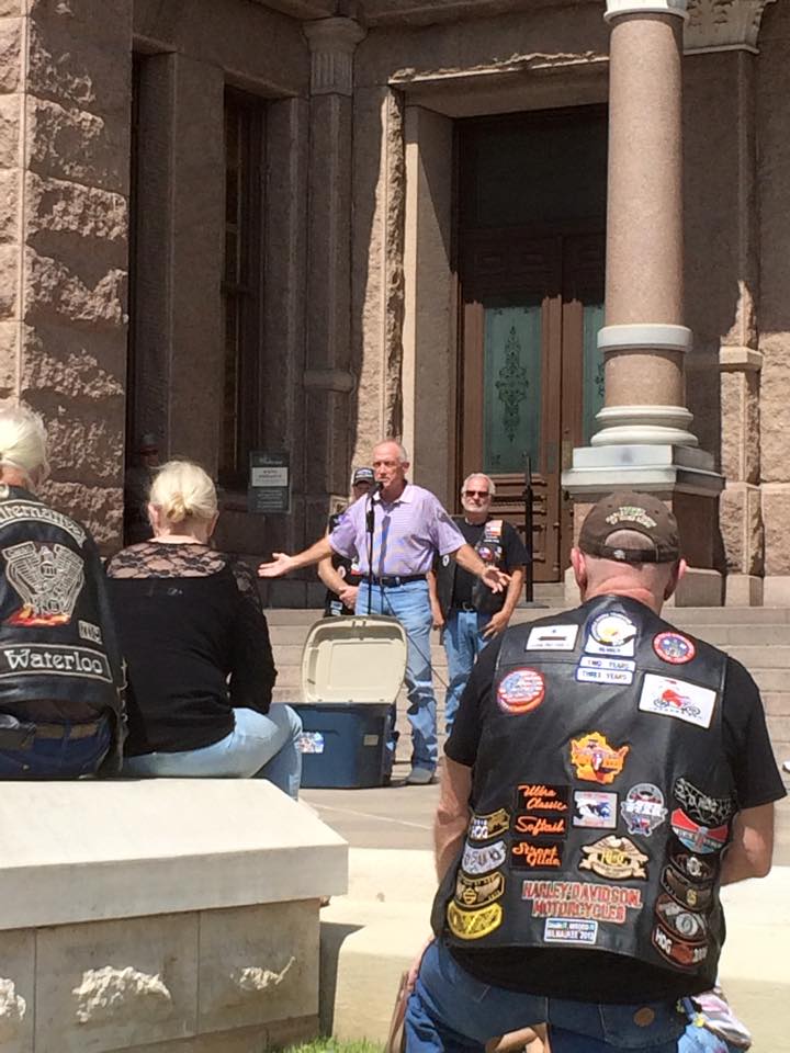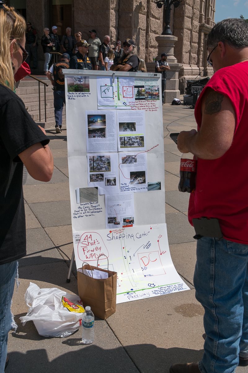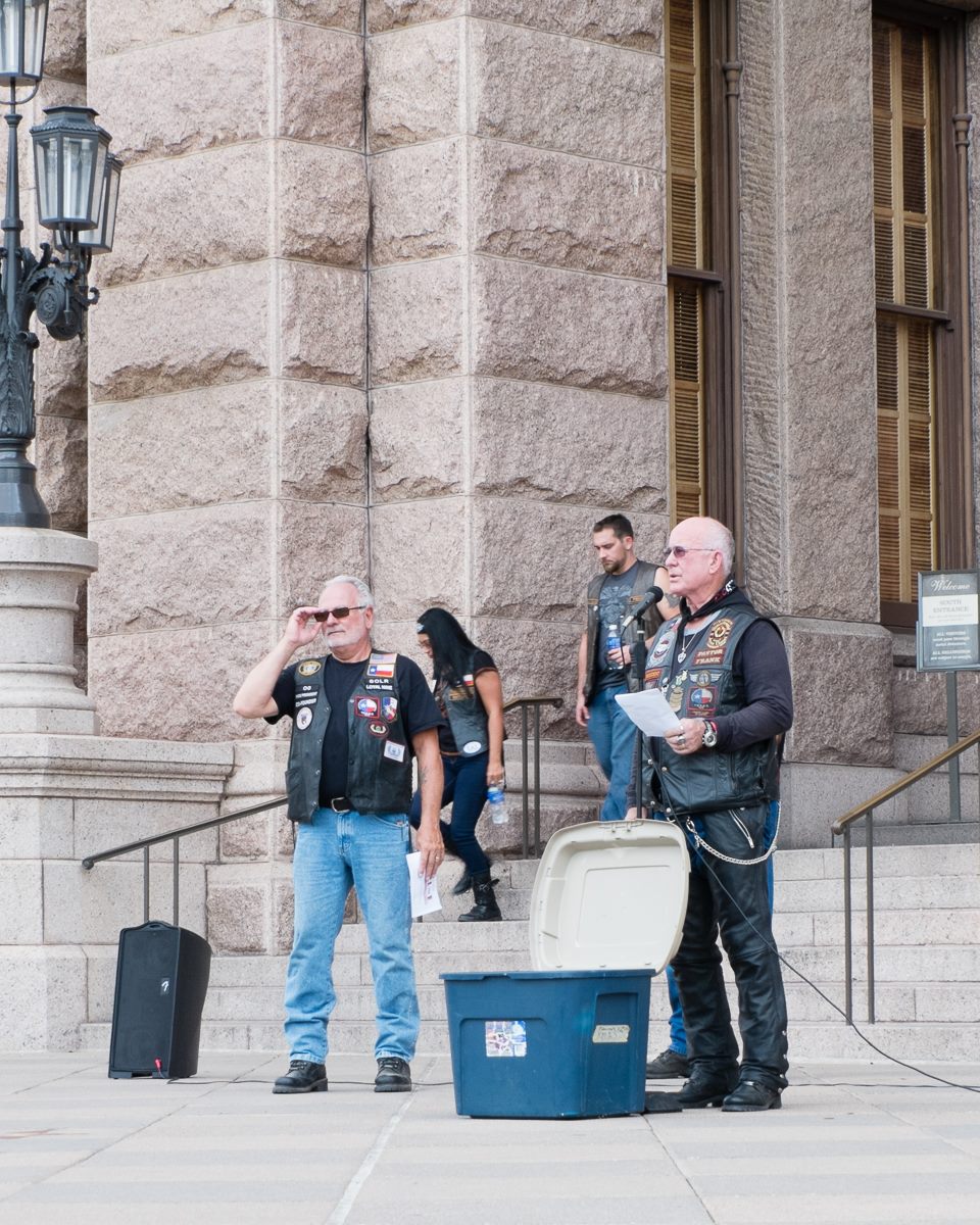 This was the big event that I missed. A rally on the steps of the Capital in support of all the bikers that have been killed, injured or incarcerated on May 17th in Waco. Fortunately even though I couldn’t attend, there were a couple of hundred riders that did, and several of the local television stations were in attendance as well. I also put out a call for photos this event, and I received a pretty god selection. Special thank you to Janice Walsh, Wes Brown, Rik Sadler, G Stanley Photography and Patty Rodriguez for permission to publish their photos. You will need to click each photo to see a larger version.