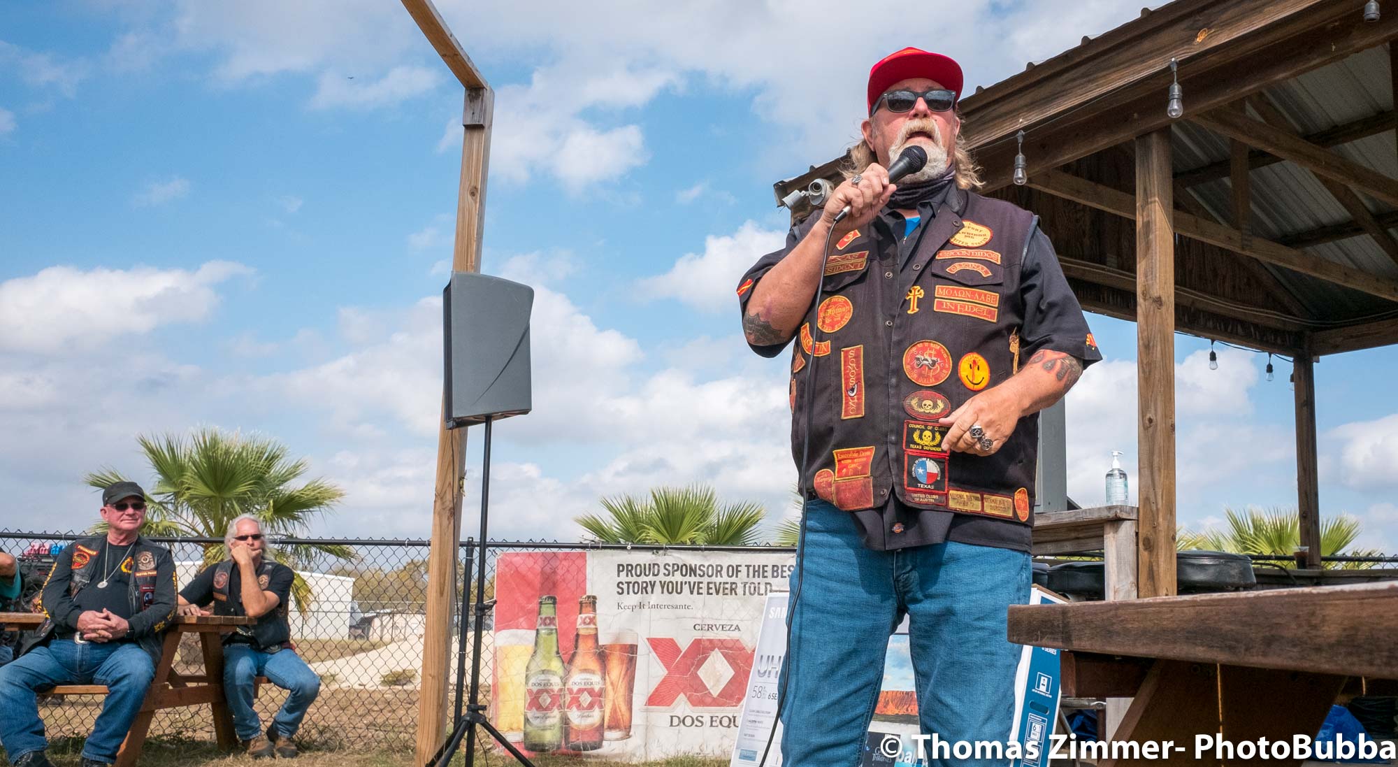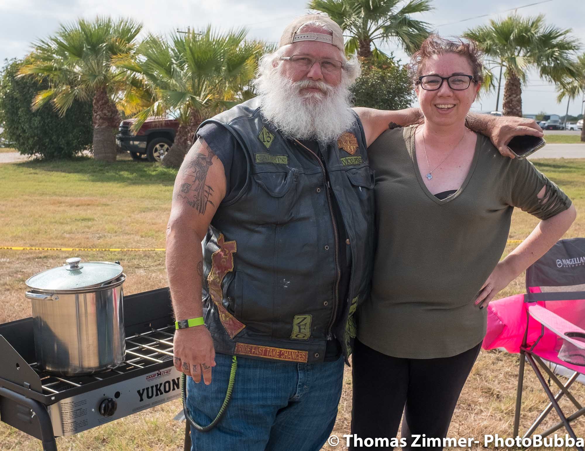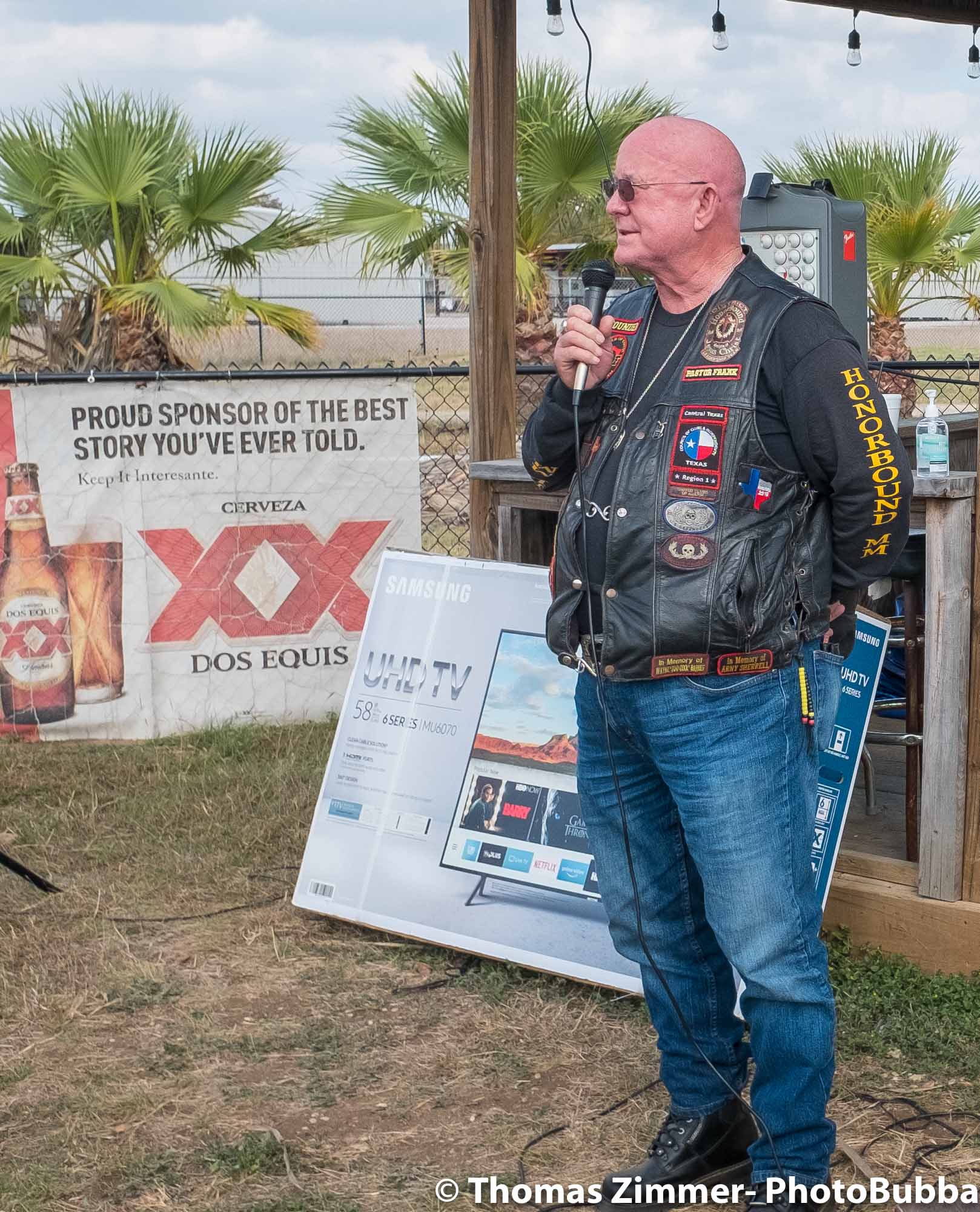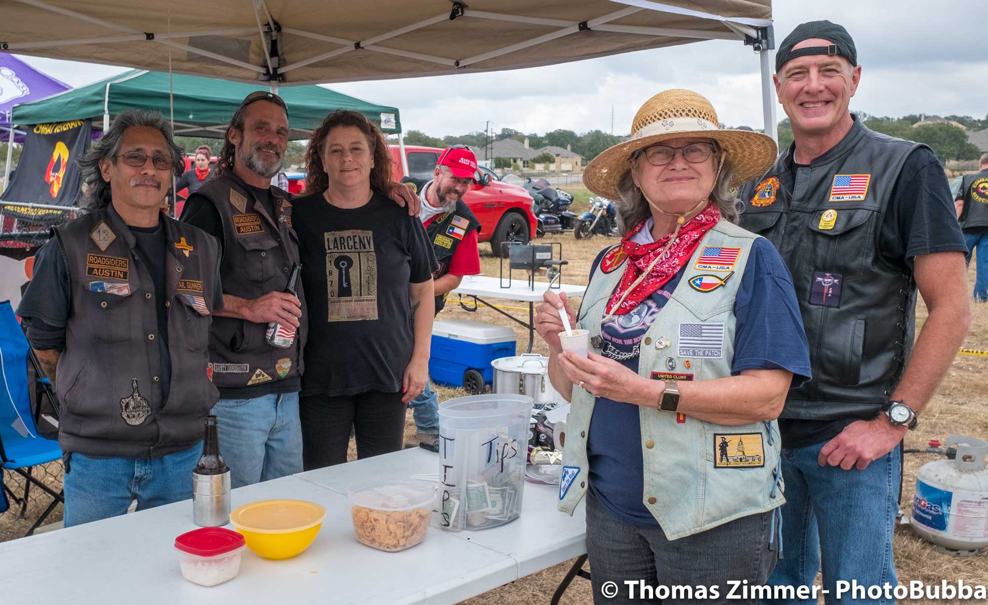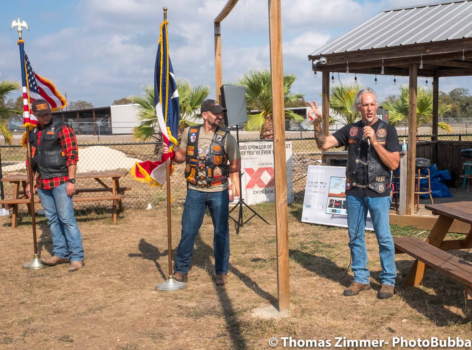 We had the annual COC&I chili cook-off today out at Time Out Sports Bar in Liberty Hill. It was an outdoor event, and was well attended. Everyone brought masks of course, but with the wonderful weather and brisk breeze, there were few health concerns. I did see a fair number of people wearing masks. Everyone attending this free event was given the opportunity to try over 20 chili styles, so it was quite a competition. I usually asked for a small portion in a tasting cup, but at least one crew handed me a full bowl of chili. Fortunately it was very good, so i chowed down and finished it easily. I did of course share with Debbie, at least most of the time. One of our newer chapter members (Kevin) joined us and got to meet lots of our friends and taste as many of the chilis as he could. After the tasting finished, we had the COC&I meeting, and heard from our legislative warriors about up-coming bills, and about the January 25th legislative day where we all go down to the capital to talk with your legislators. Apparently there are going to be a lot of changes from two years ago when we had the last one of these, but I’m sure it will be an interesting day to say the least. At the end of the meeting, the trophies were handed out for the chili-cook-off winners. The photos are in reverse winner order, third, second, first, and then peoples choice, so you can look at the photos to see who won. Then we had the raffle give-aways, finishing with drawing of the HOBO (Help Our Brothers Out) 100th anniversary Harley Davidson Road King winner. Turns out he was at the event, but went home. When we called him, he came right back and I was able to get his photo with the bike. Another wonderful event for the motorcycle riding community.