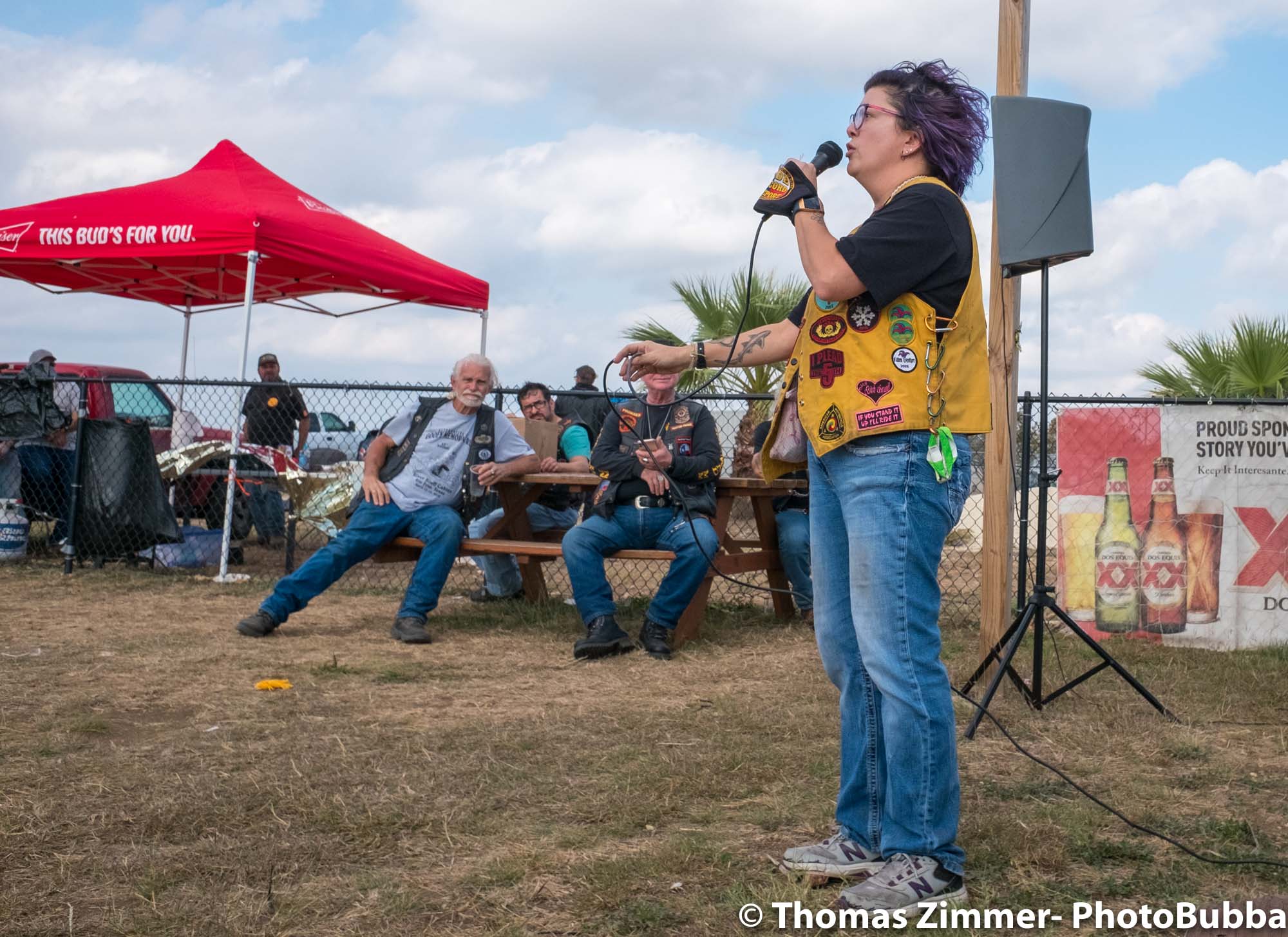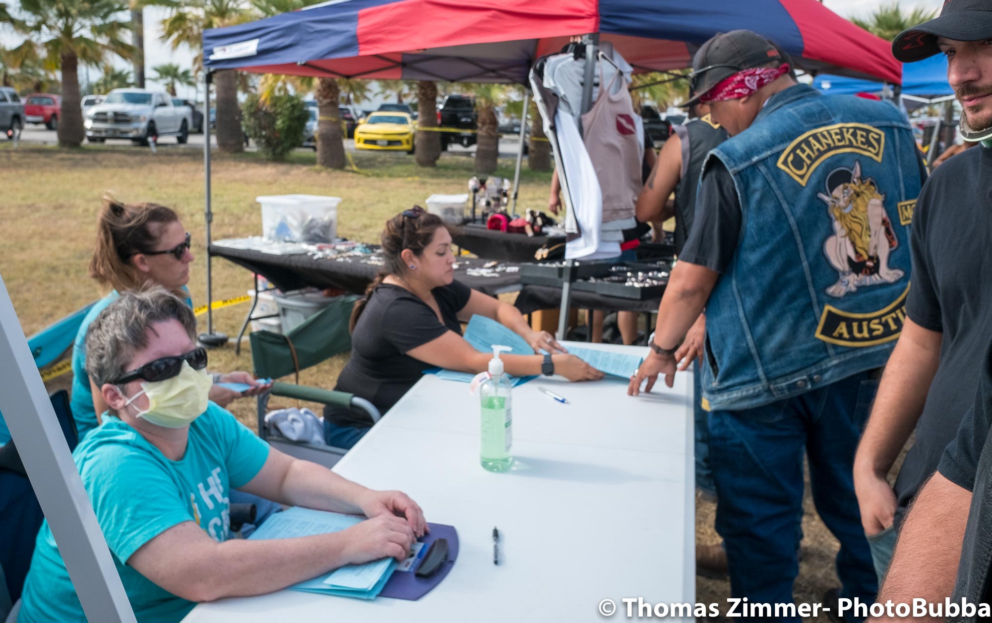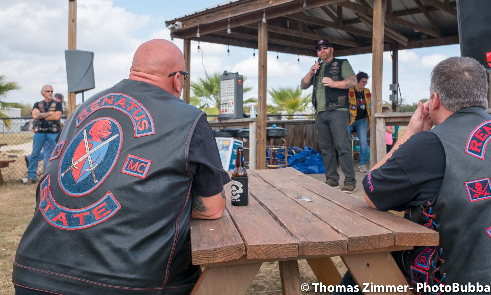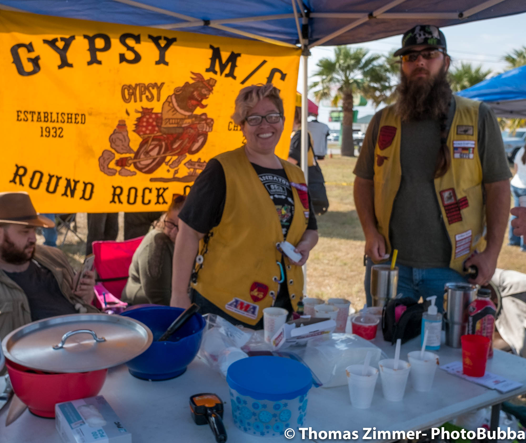 We had the annual COC&I chili cook-off today out at Time Out Sports Bar in Liberty Hill. It was an outdoor event, and was well attended. Everyone brought masks of course, but with the wonderful weather and brisk breeze, there were few health concerns. I did see a fair number of people wearing masks. Everyone attending this free event was given the opportunity to try over 20 chili styles, so it was quite a competition. I usually asked for a small portion in a tasting cup, but at least one crew handed me a full bowl of chili. Fortunately it was very good, so i chowed down and finished it easily. I did of course share with Debbie, at least most of the time. One of our newer chapter members (Kevin) joined us and got to meet lots of our friends and taste as many of the chilis as he could. After the tasting finished, we had the COC&I meeting, and heard from our legislative warriors about up-coming bills, and about the January 25th legislative day where we all go down to the capital to talk with your legislators. Apparently there are going to be a lot of changes from two years ago when we had the last one of these, but I’m sure it will be an interesting day to say the least. At the end of the meeting, the trophies were handed out for the chili-cook-off winners. The photos are in reverse winner order, third, second, first, and then peoples choice, so you can look at the photos to see who won. Then we had the raffle give-aways, finishing with drawing of the HOBO (Help Our Brothers Out) 100th anniversary Harley Davidson Road King winner. Turns out he was at the event, but went home. When we called him, he came right back and I was able to get his photo with the bike. Another wonderful event for the motorcycle riding community.