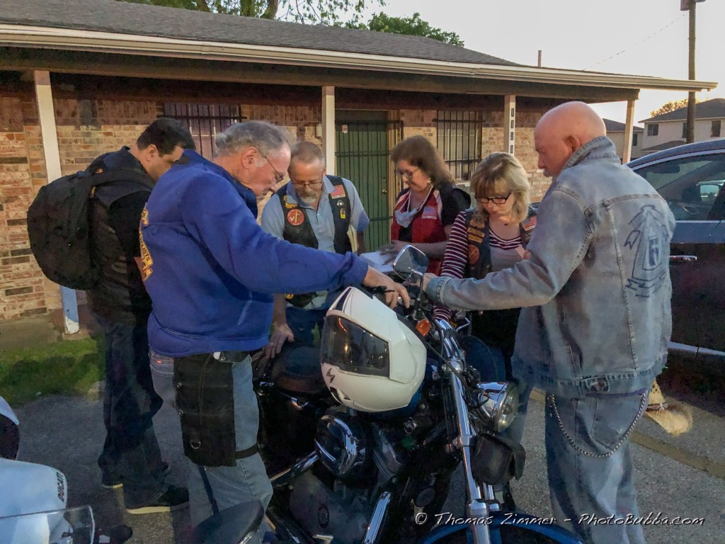 We had our monthly New Life Riders chapter meeting tonight at Spring Hill Restraunt. It was a good meeting, and made especially good because Don and Susan Potter were in town visiting and Randy our Area Rep dropped by as well. The food was excellent as usual, We ordered the bowl of Gumbo and poured it over a baked potato and Debbie and I split it between us. After the meeting were blessed to do a couple of bike blessing of members that hadn’t had their bikes blessed this year. Just a couple of photos this evening, of the bike blessings.
