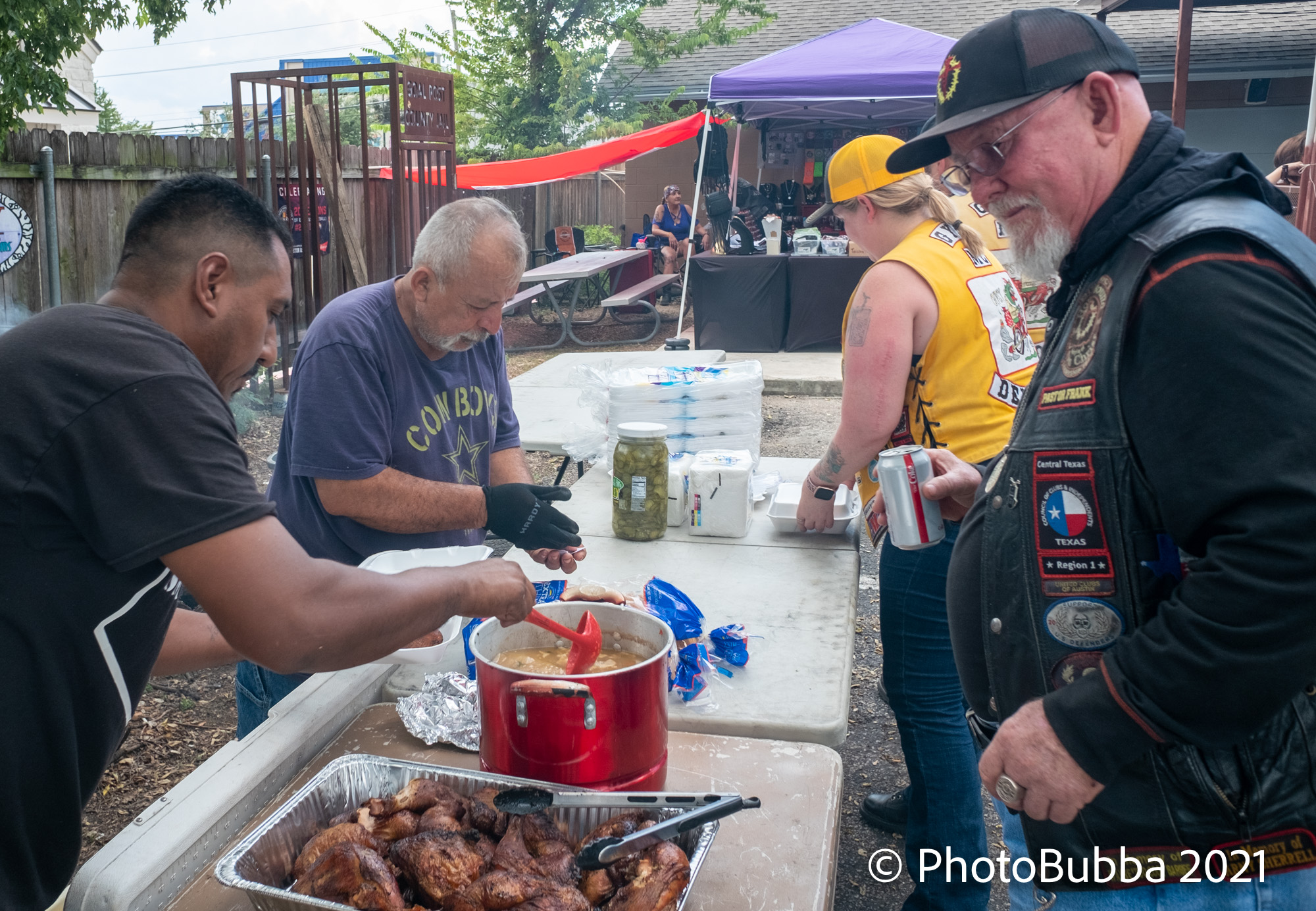 We headed to the Goal Post around lunch time to attend the benefit for Los Rider MC member Wolf. We encountered Wolf as we arrived. Apparently he had an accident a few weeks ago and was still having problems with his back, but fortunately he was able to get around and it was good to see him. We arrived a bit early, so attendance was still light, but we hung around and said hello to a few people and waited for the food serving to start. Today’s plate was BBQ Chicken with all the fixings. It was really good and definitely worth the wait. Here then are a few photos for your viewing pleasure;