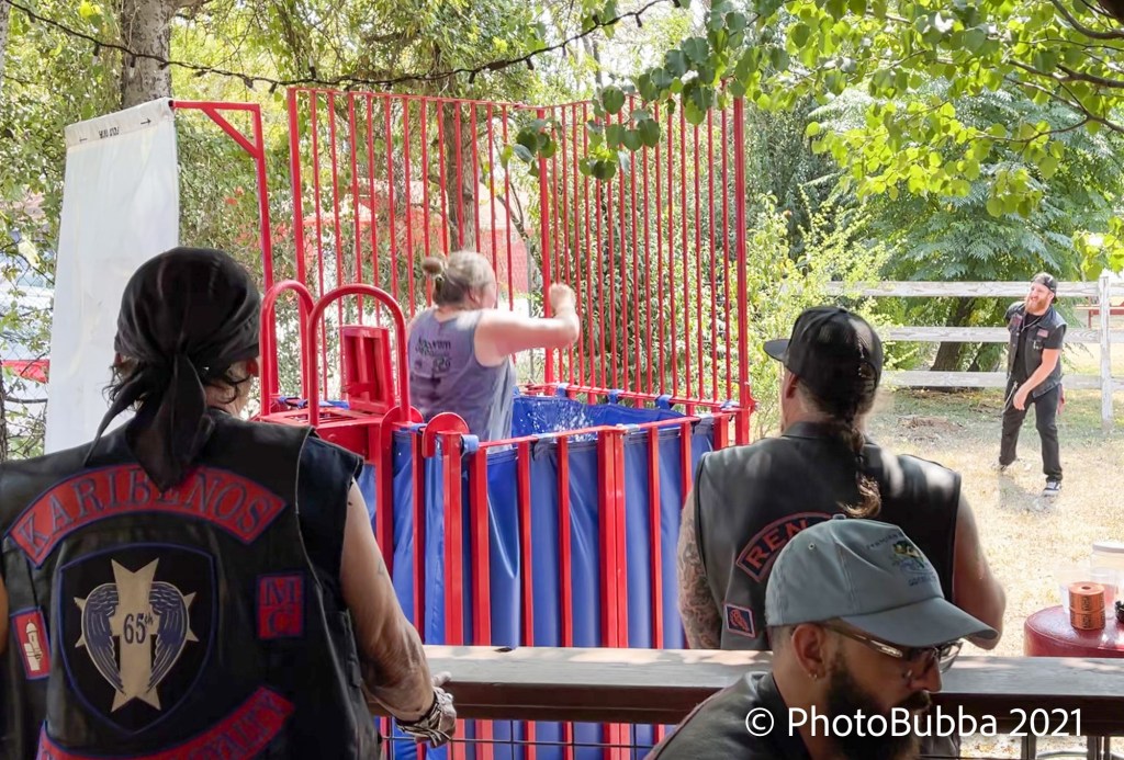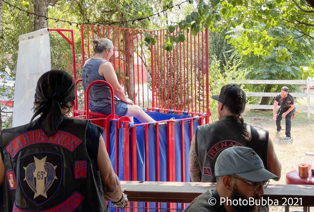 We went to the Gypsy’s MC anniversary party at the Roadhouse Saturday, for some lunch and to visit with friends. It was also a worthy benefit for the Shaylah Dame Artistic Scholarship Fund. The food was provide by WHA-THE-TRUCK and their was a slip and slide set up for the kids. Of course one of the highlights of the event was the dunk tank, and volun-told members we happy to be cooled off in the process.