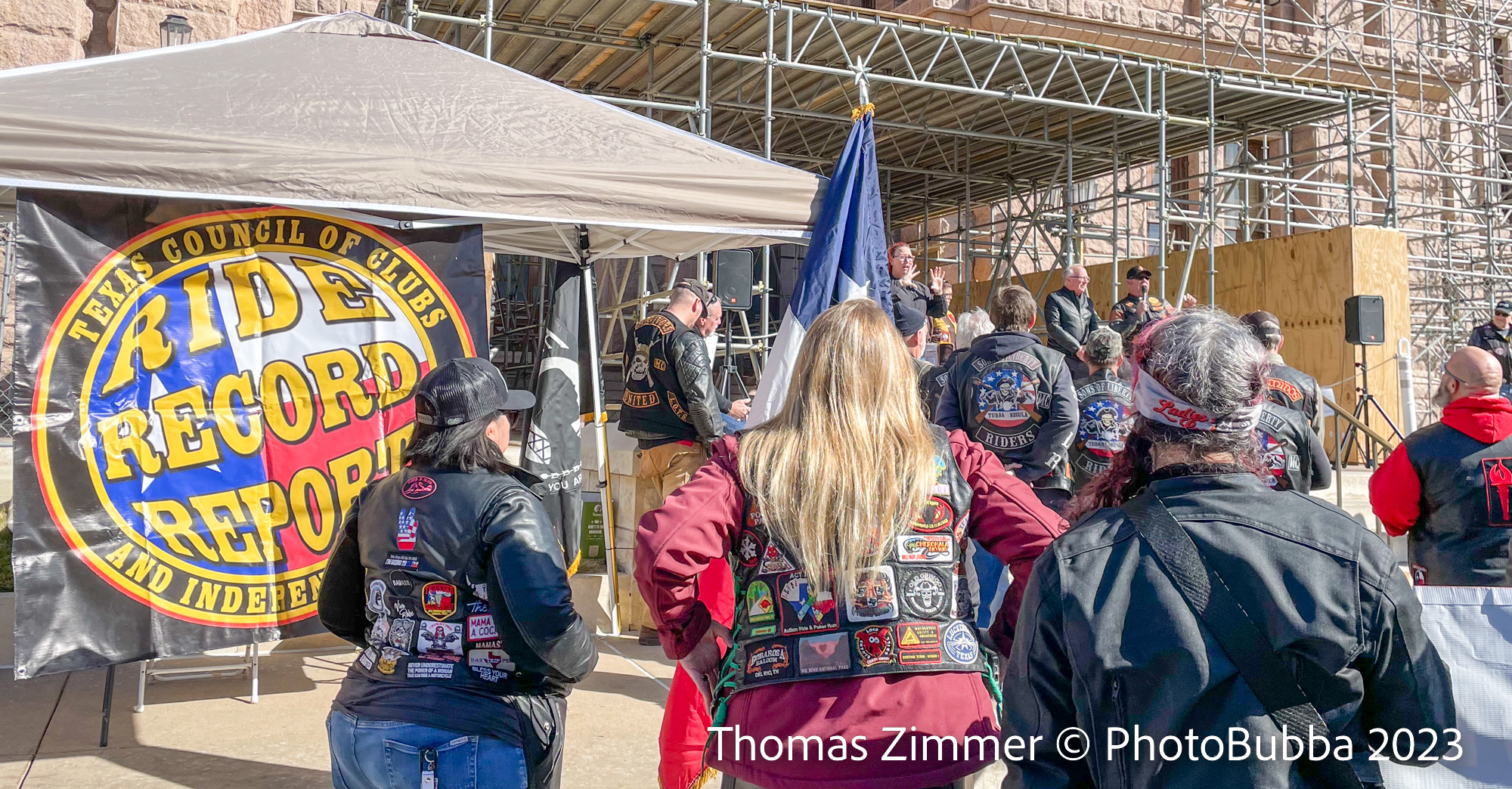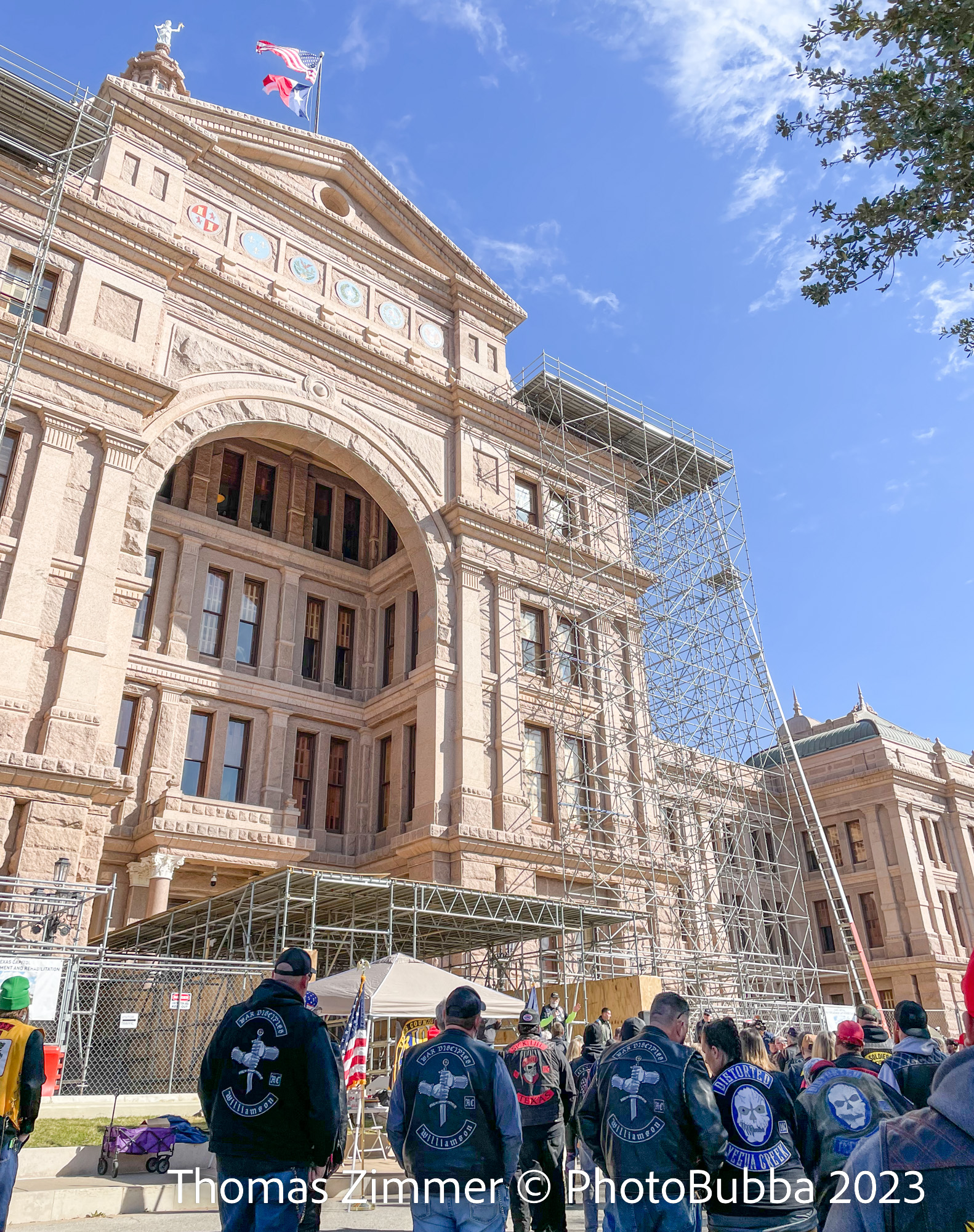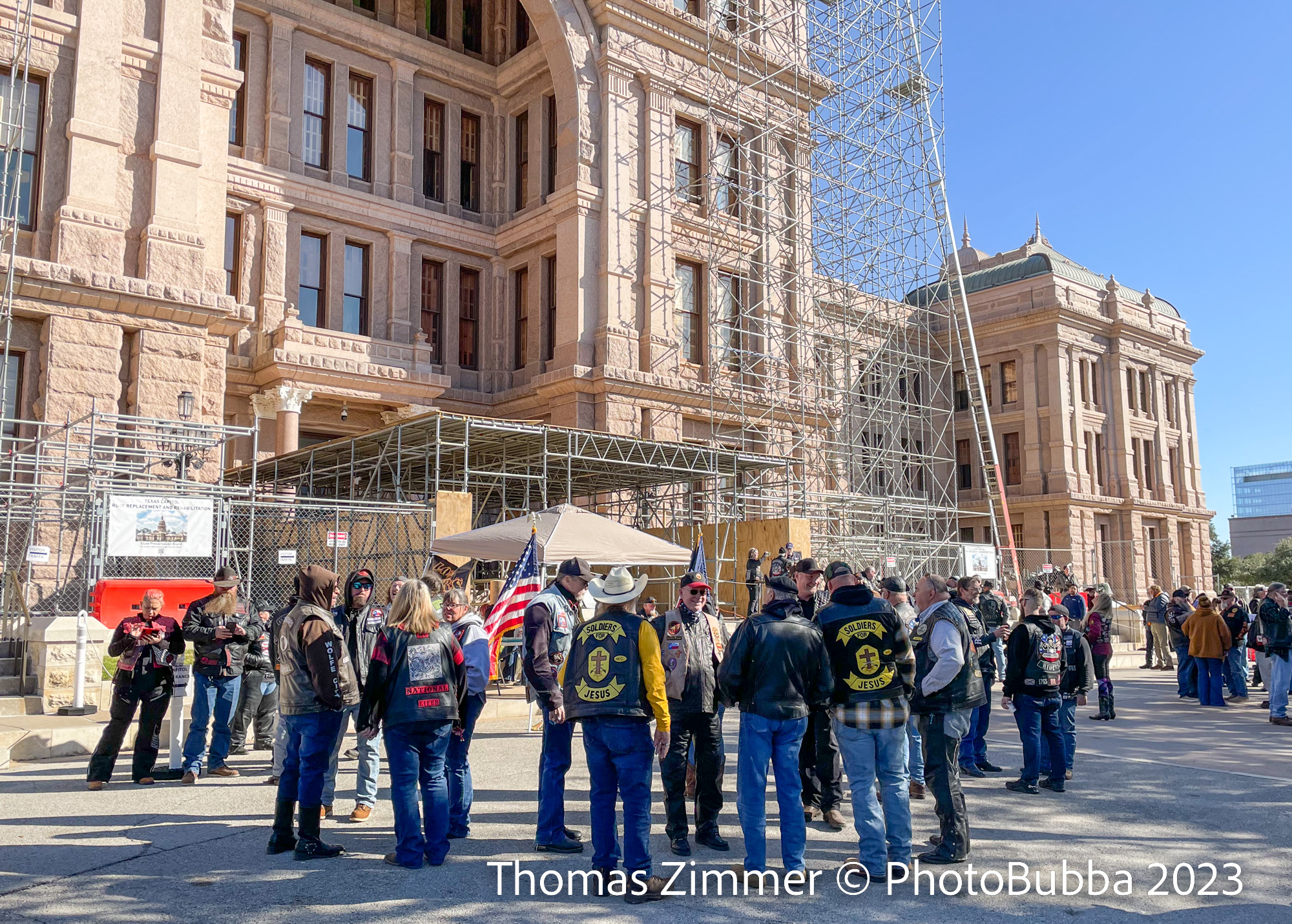I usually go down to the Texas Capital every two years for Legislative Day with all the Bikers. This year I didn’t go because I had a Doctor’s appointment Monday morning to check on my new pacemaker I had installed a couple of months ago. Fortunately my lovely wife Debbie did go down to the Capital and took some photos. Here then are Debbie’s photos of Legislative Day at the Texas State Capital.