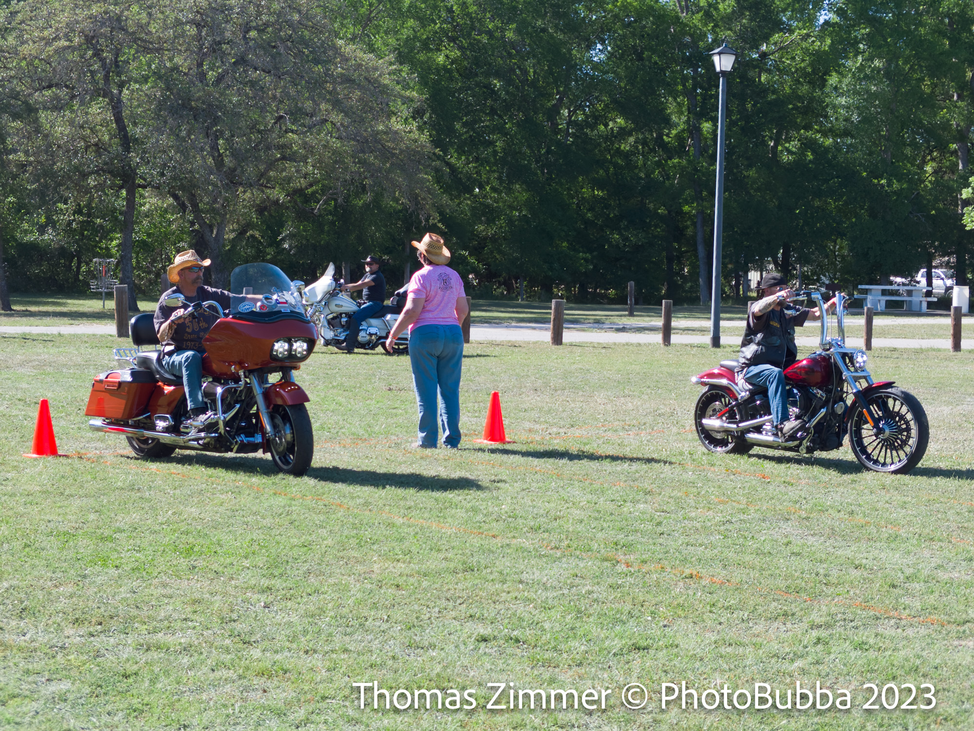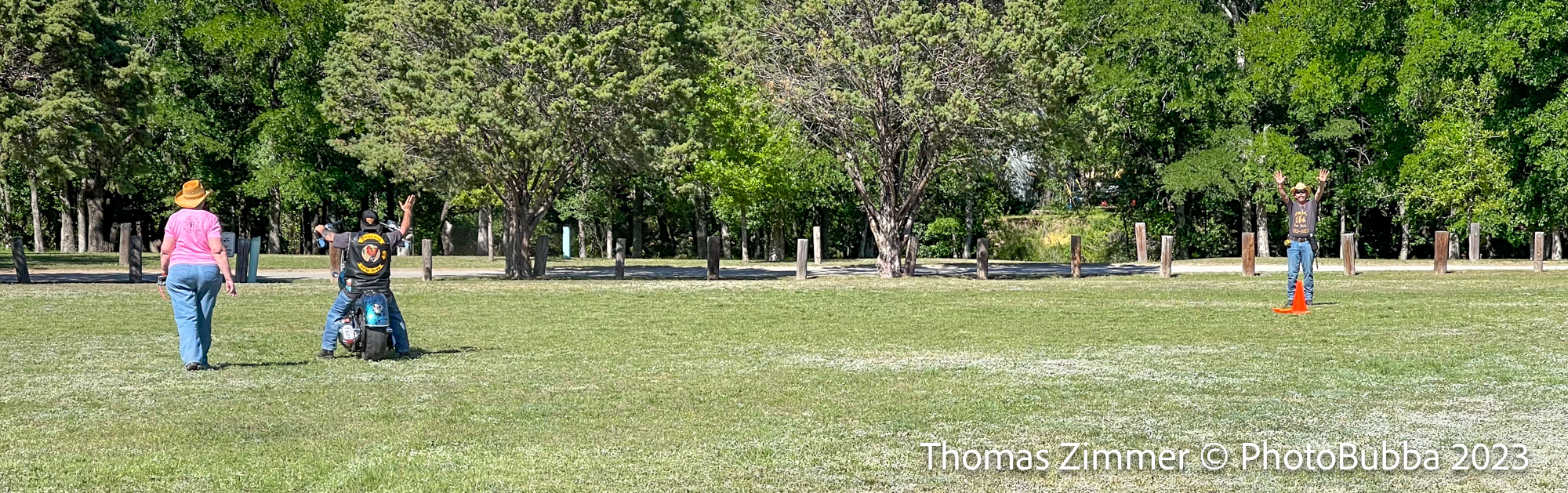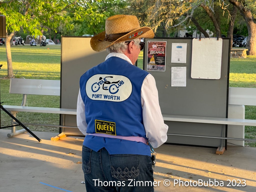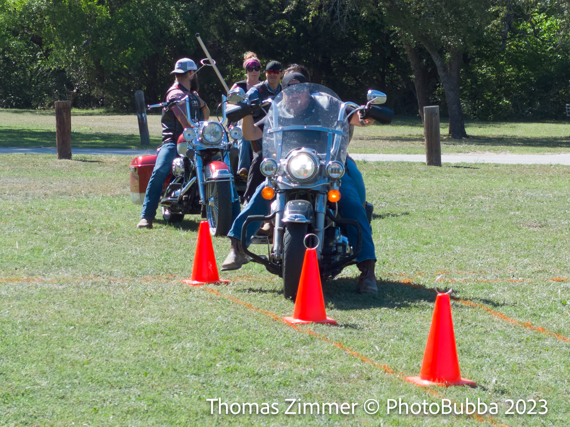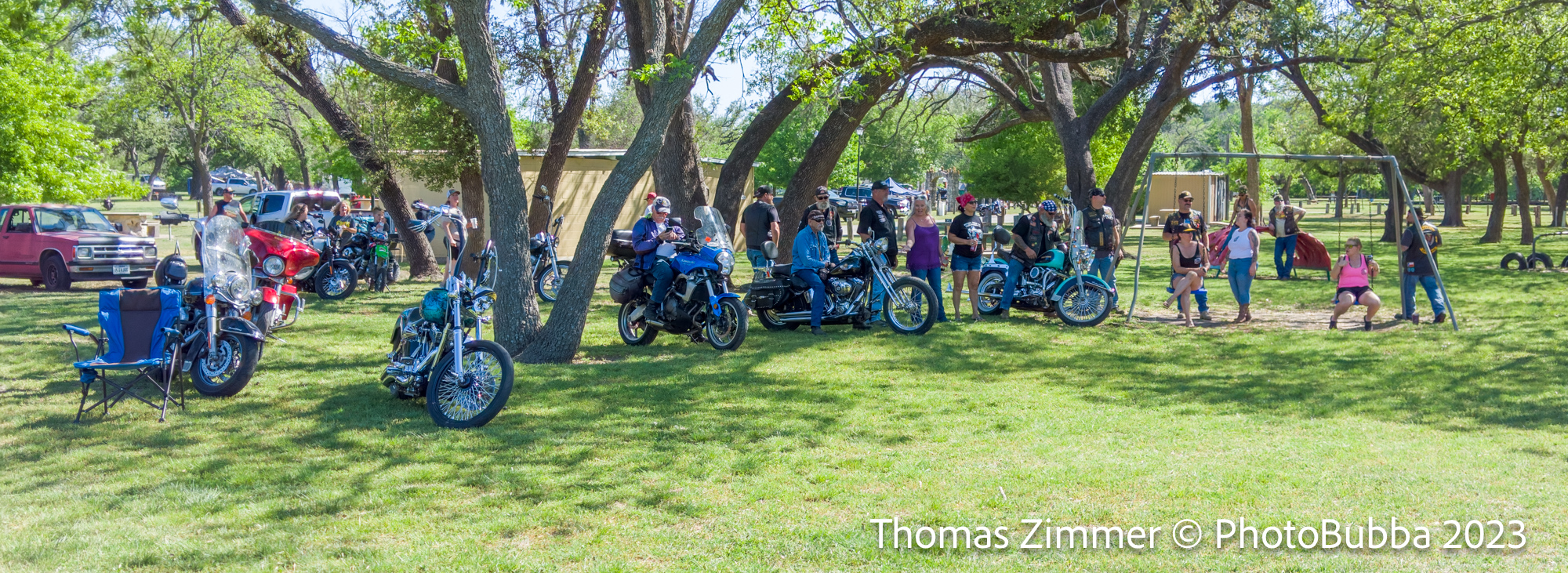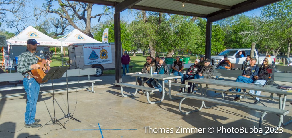 We headed out Friday afternoon for Comanche Texas to attend the 50 year anniversary rally for TMRA (Texas Motorcycle Roadriders Association). It was a bit warm Friday afternoon, but Saturday and Sunday were wonderful. Our fearless leader Jean Hudgins has passed away a few months ago, so I think everyone was still in a bit of a shock, but rally attendance was good, and we had a great time. The rally included the usual components, like the silent auction, the Hobo Stew (no hobos were harmed in the making of this stew), the Bike show, Saturday morning hill country ride, Saturday afternoon bike games, including one bike spill. Fortunately no-one was injured, and the lucky (lucky?) fellow won first price in the blindfolded bike ride because he crashed right on top of the target cone Amazing!. We also had some great tunes Saturday evening after the awards ceremony, and got to talk with old friends and go to dinner of course. Sunday Don Potter held a short memorial for Jean, followed by a great sermon and music. I got lots of pictures, including one of the bike spill, but unfortunately no video of that part. I did get video of the Bike Parade, the Memorial, and the service Sunday morning which are posted below, followed by the photos.