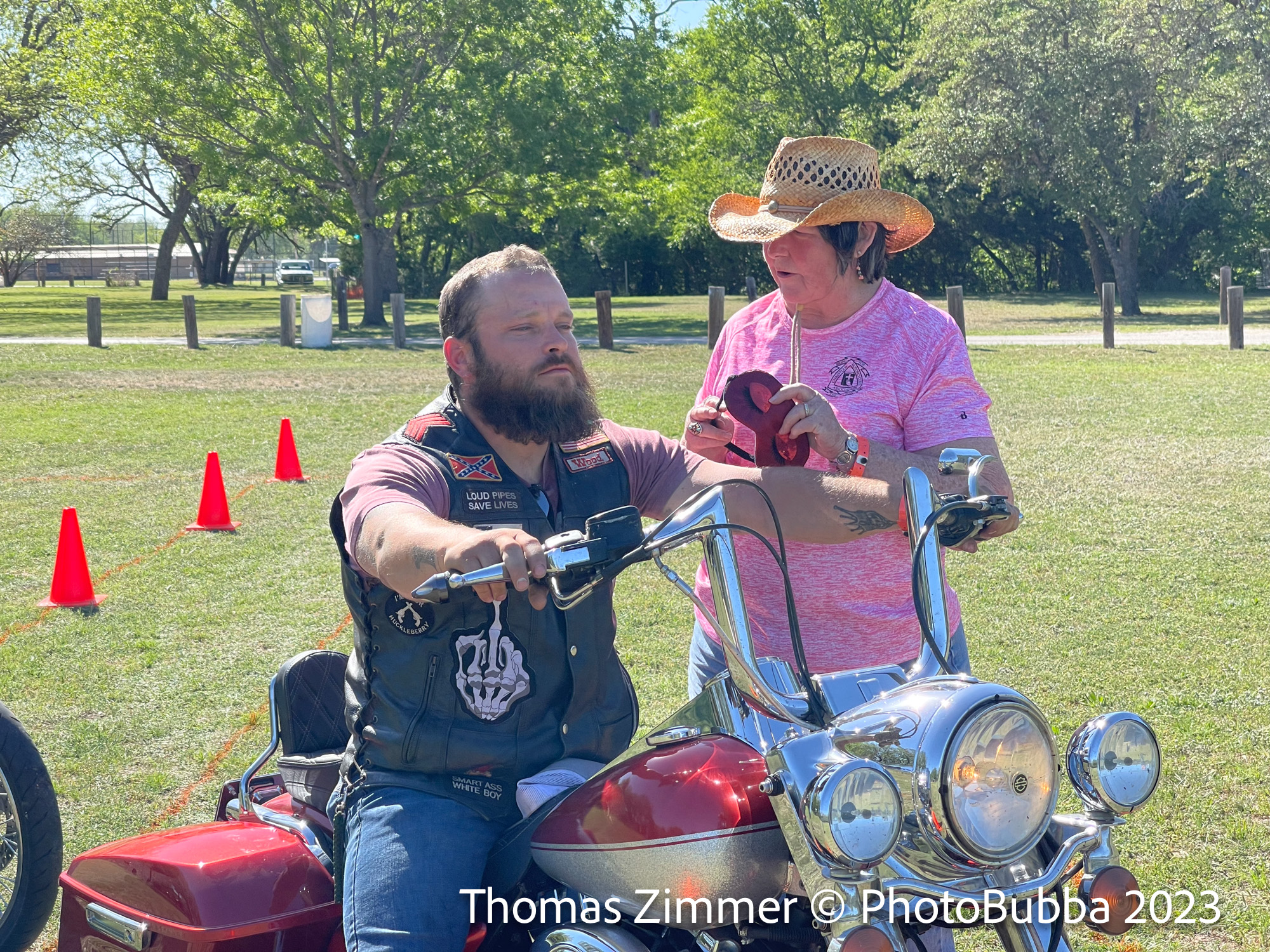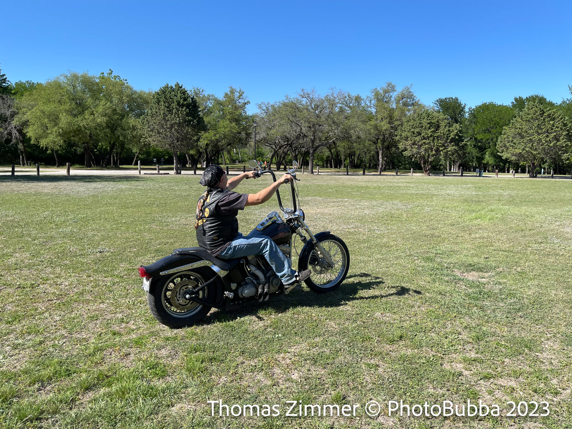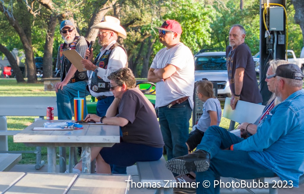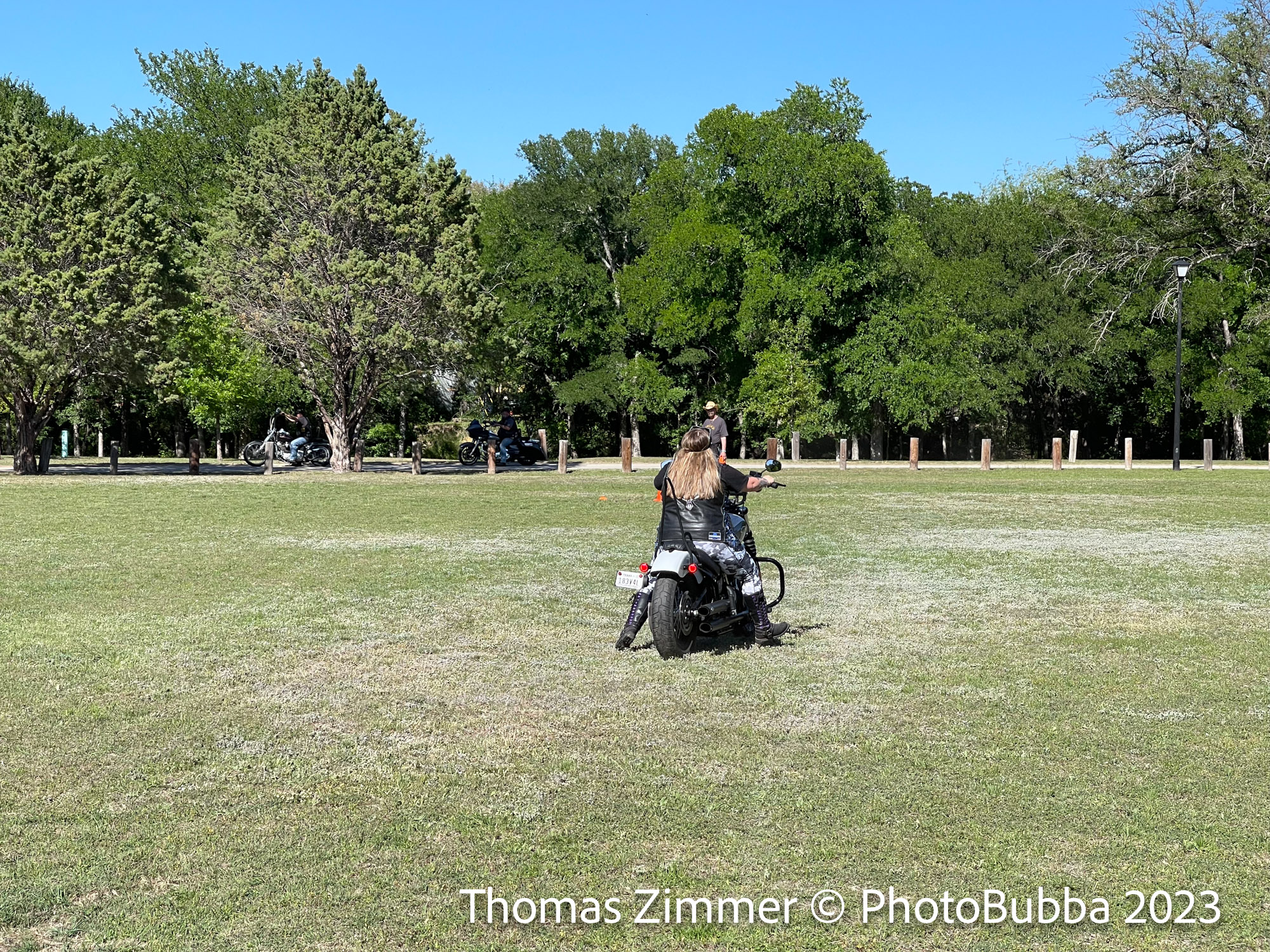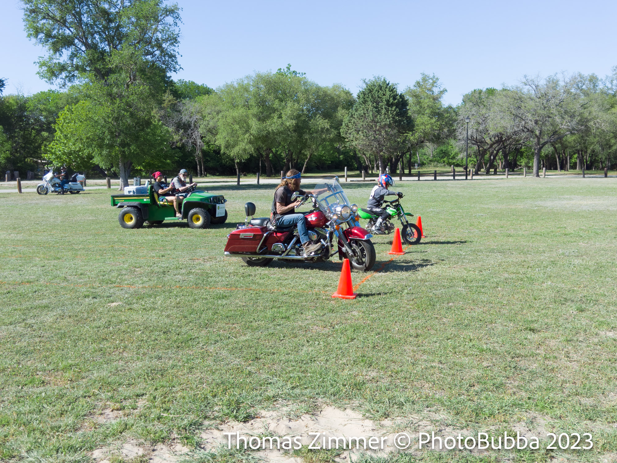 We headed out Friday afternoon for Comanche Texas to attend the 50 year anniversary rally for TMRA (Texas Motorcycle Roadriders Association). It was a bit warm Friday afternoon, but Saturday and Sunday were wonderful. Our fearless leader Jean Hudgins has passed away a few months ago, so I think everyone was still in a bit of a shock, but rally attendance was good, and we had a great time. The rally included the usual components, like the silent auction, the Hobo Stew (no hobos were harmed in the making of this stew), the Bike show, Saturday morning hill country ride, Saturday afternoon bike games, including one bike spill. Fortunately no-one was injured, and the lucky (lucky?) fellow won first price in the blindfolded bike ride because he crashed right on top of the target cone Amazing!. We also had some great tunes Saturday evening after the awards ceremony, and got to talk with old friends and go to dinner of course. Sunday Don Potter held a short memorial for Jean, followed by a great sermon and music. I got lots of pictures, including one of the bike spill, but unfortunately no video of that part. I did get video of the Bike Parade, the Memorial, and the service Sunday morning which are posted below, followed by the photos.