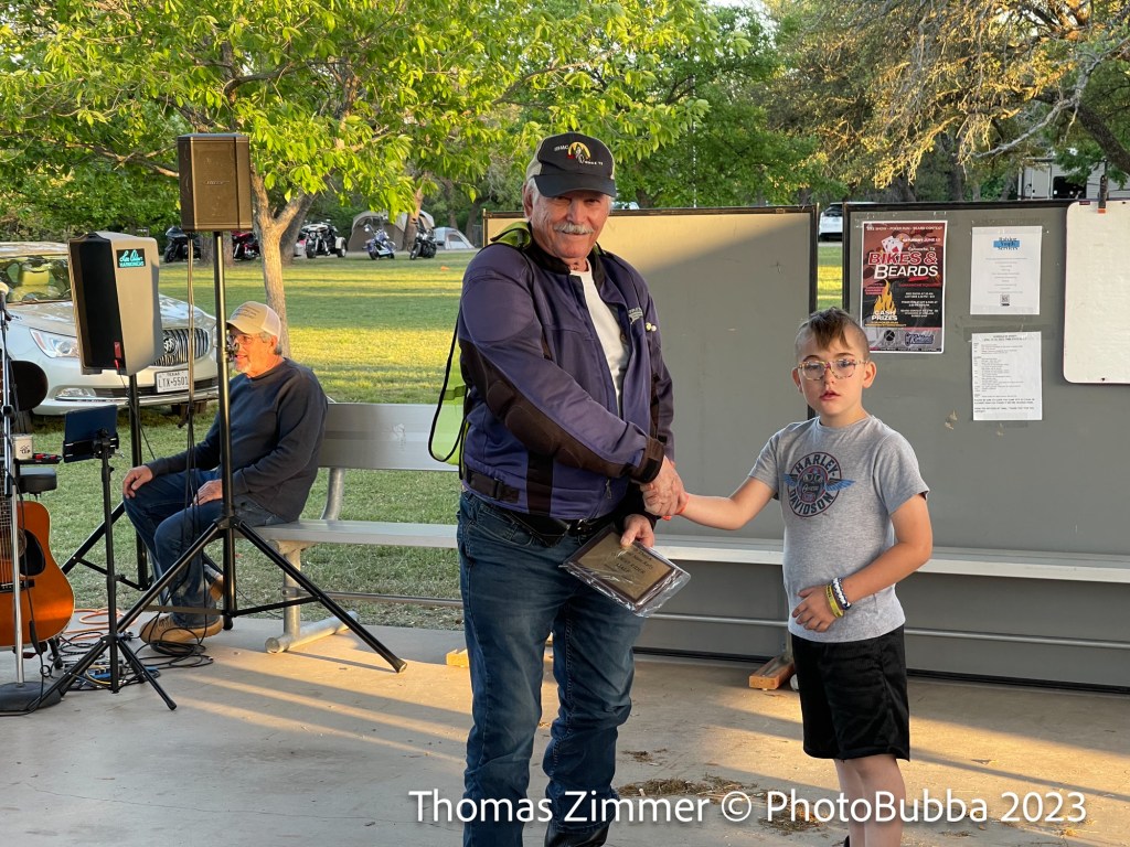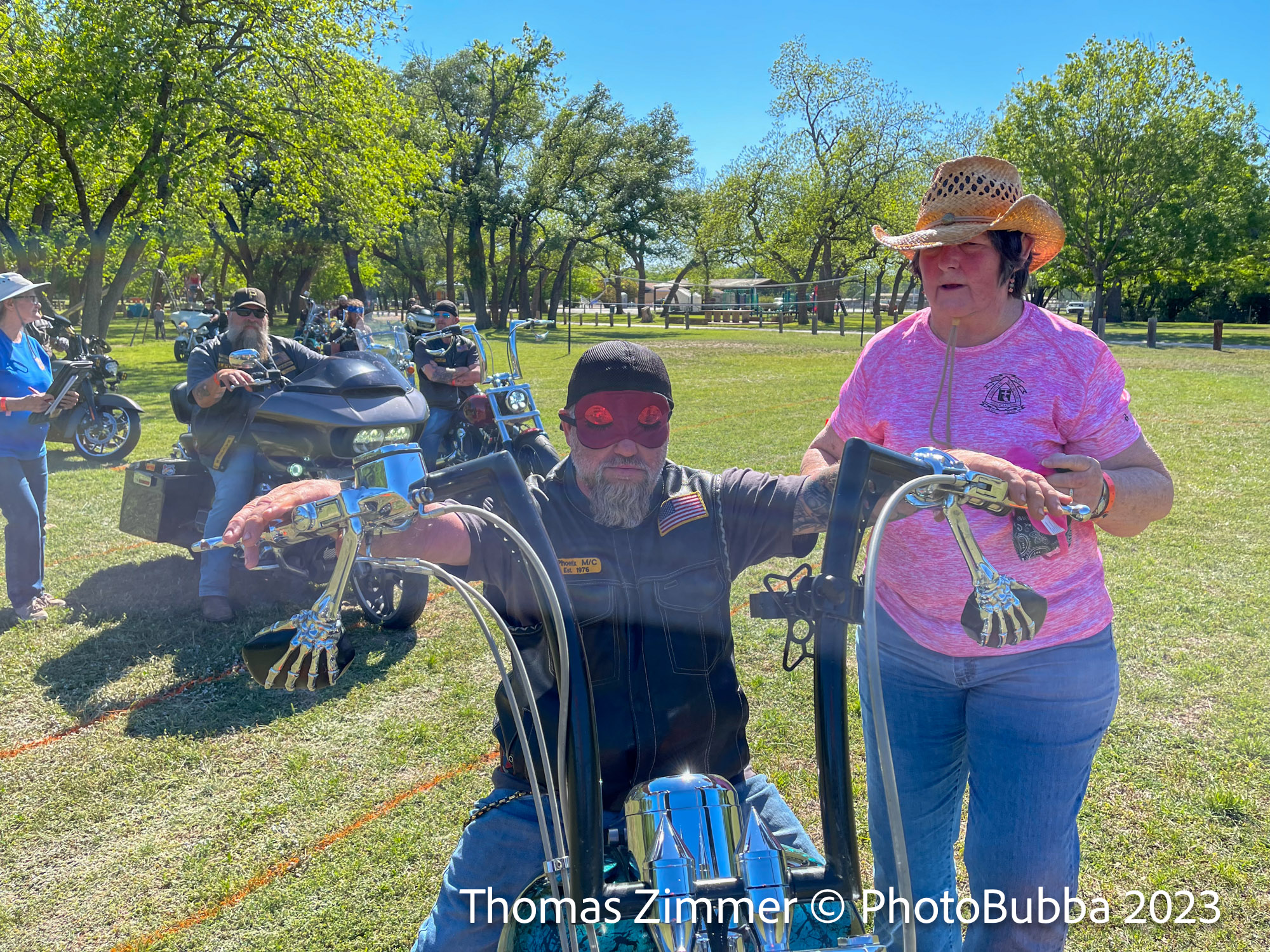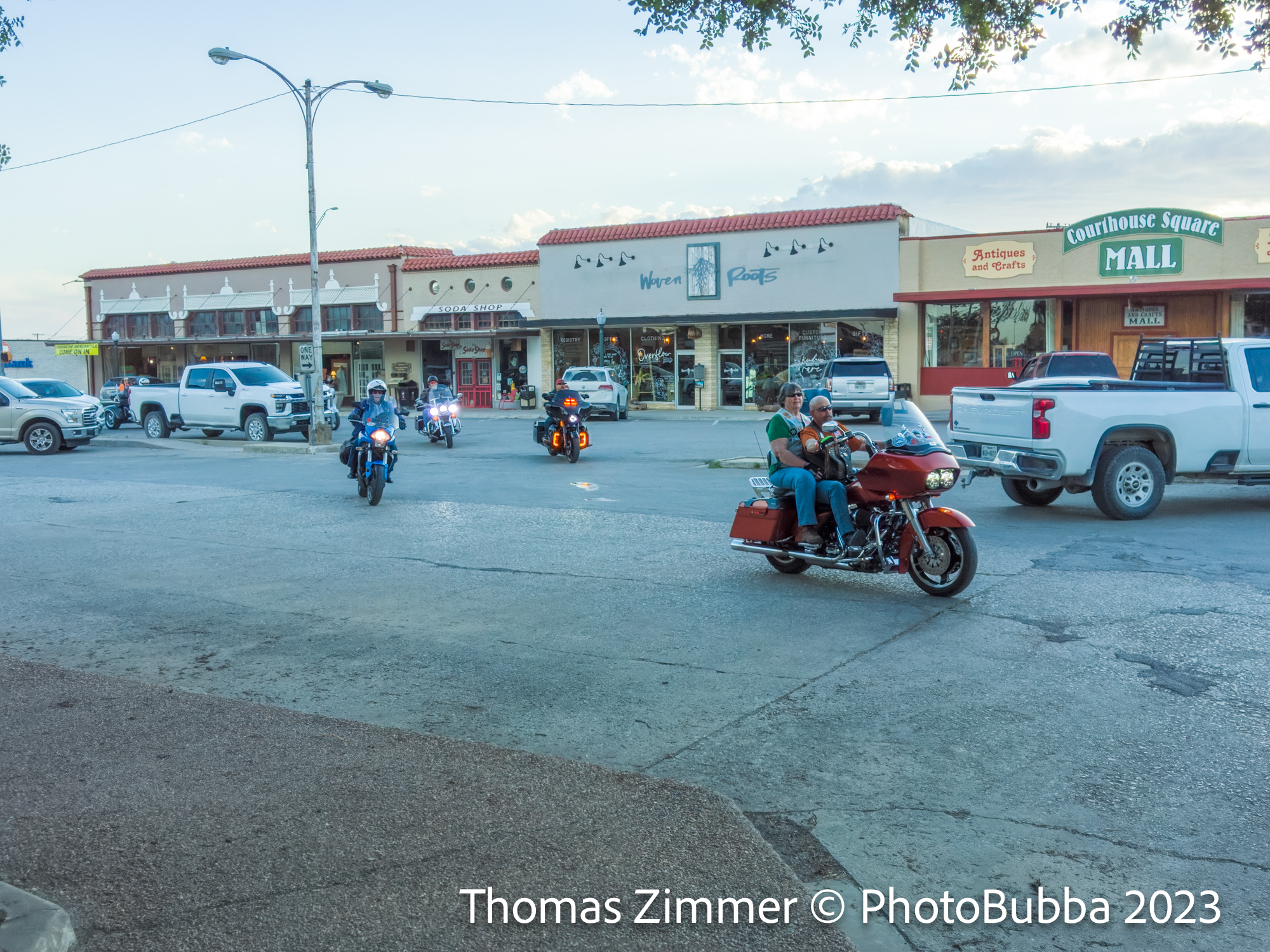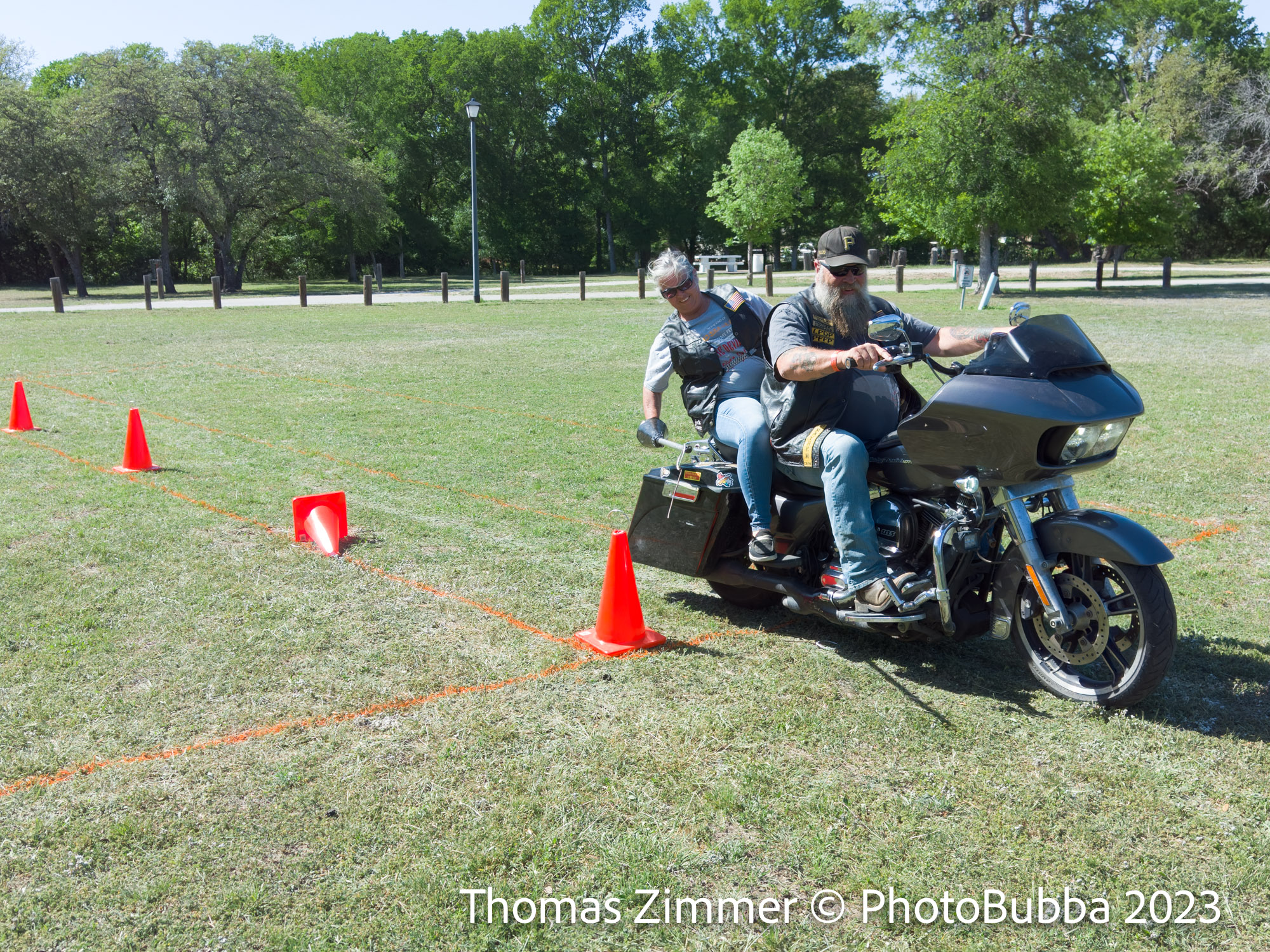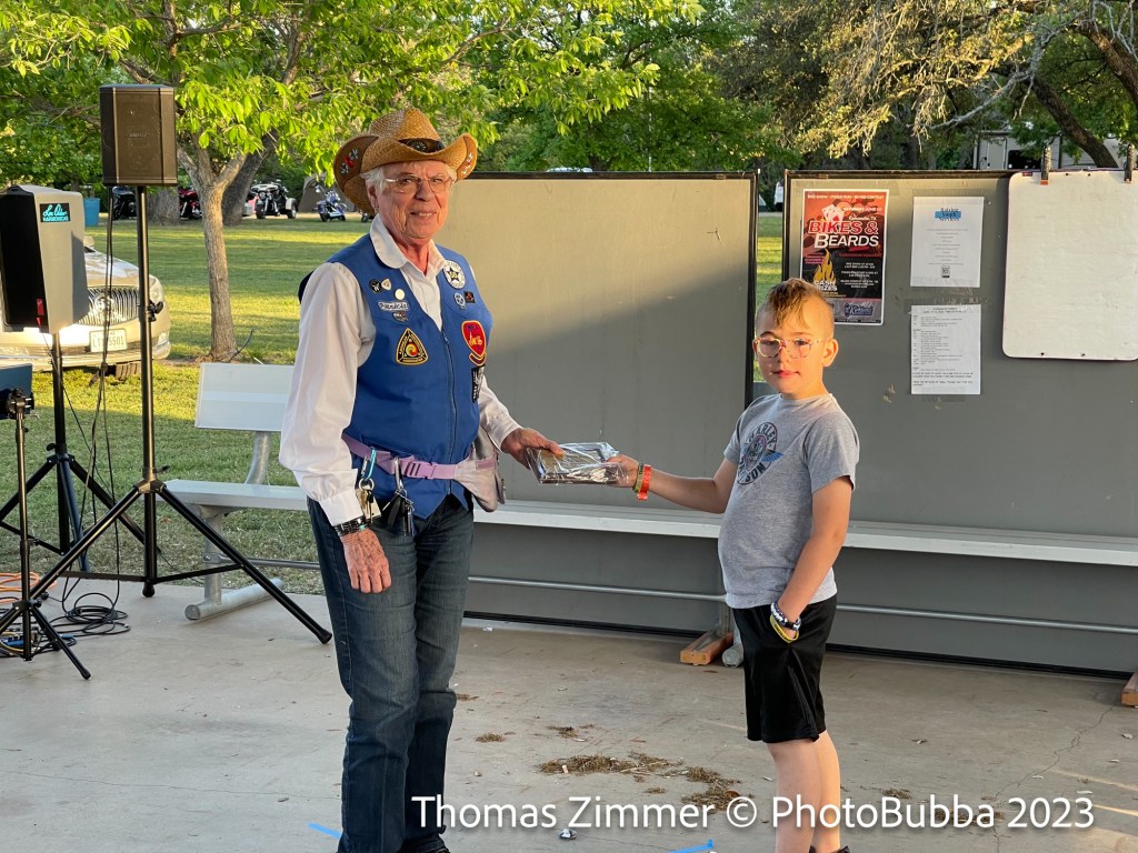 We headed out Friday afternoon for Comanche Texas to attend the 50 year anniversary rally for TMRA (Texas Motorcycle Roadriders Association). It was a bit warm Friday afternoon, but Saturday and Sunday were wonderful. Our fearless leader Jean Hudgins has passed away a few months ago, so I think everyone was still in a bit of a shock, but rally attendance was good, and we had a great time. The rally included the usual components, like the silent auction, the Hobo Stew (no hobos were harmed in the making of this stew), the Bike show, Saturday morning hill country ride, Saturday afternoon bike games, including one bike spill. Fortunately no-one was injured, and the lucky (lucky?) fellow won first price in the blindfolded bike ride because he crashed right on top of the target cone Amazing!. We also had some great tunes Saturday evening after the awards ceremony, and got to talk with old friends and go to dinner of course. Sunday Don Potter held a short memorial for Jean, followed by a great sermon and music. I got lots of pictures, including one of the bike spill, but unfortunately no video of that part. I did get video of the Bike Parade, the Memorial, and the service Sunday morning which are posted below, followed by the photos.