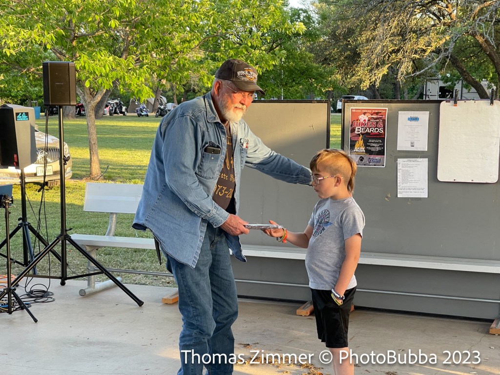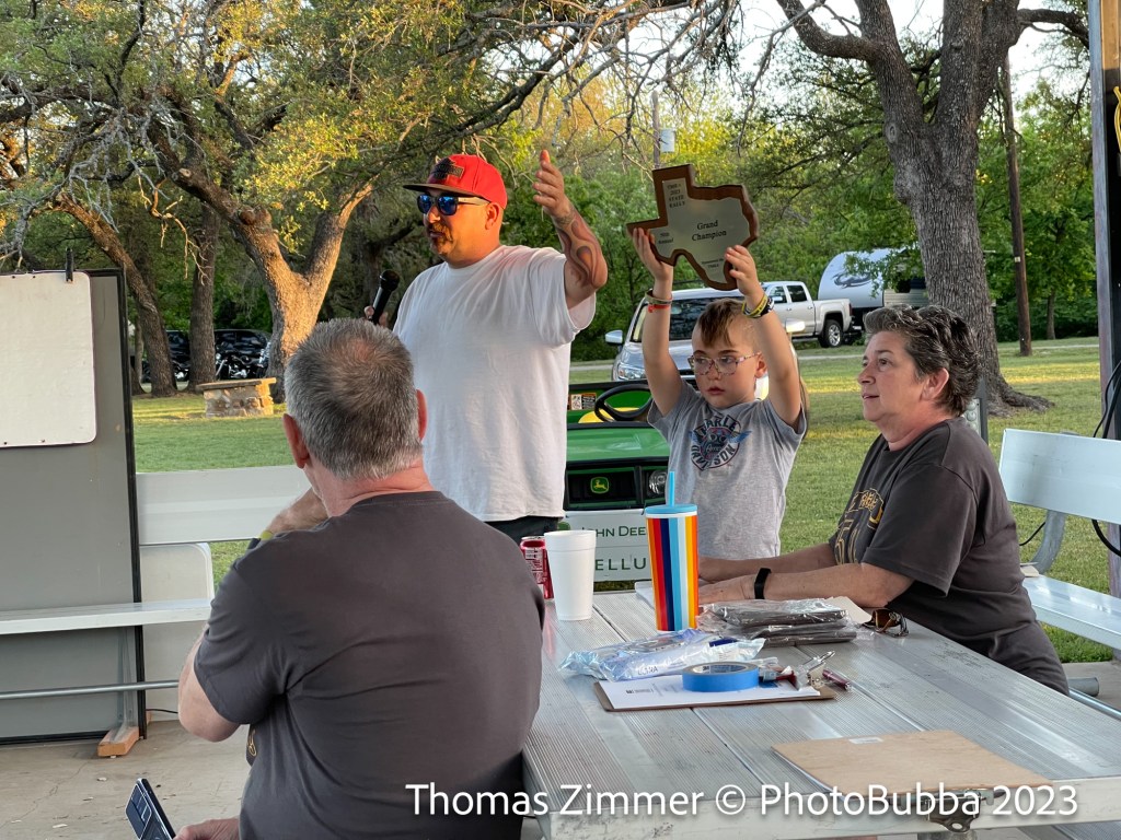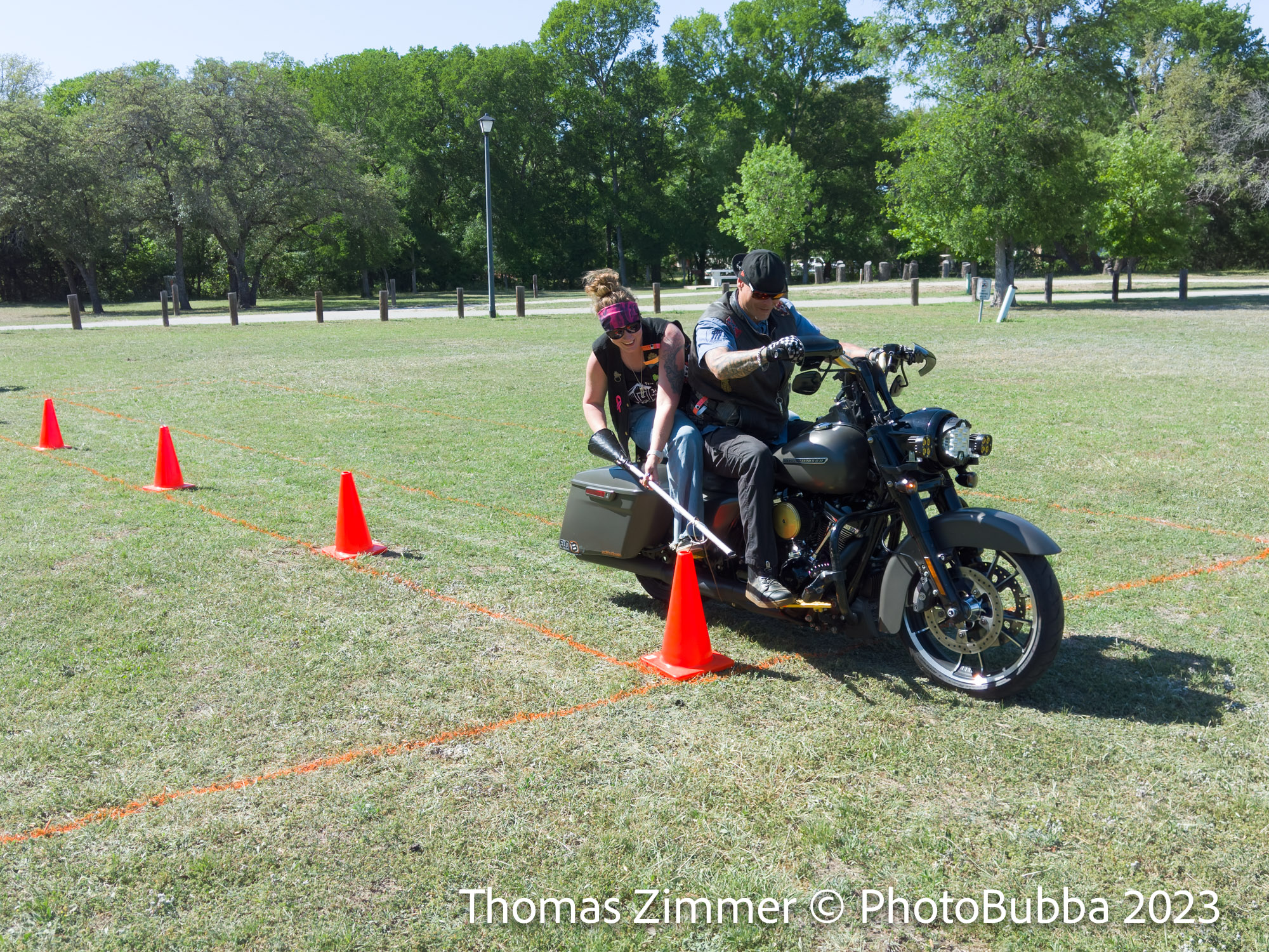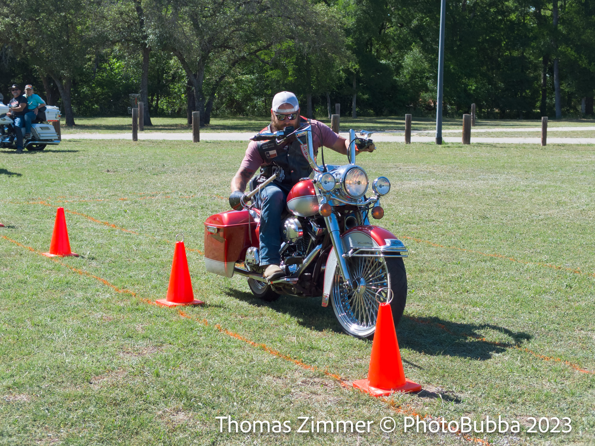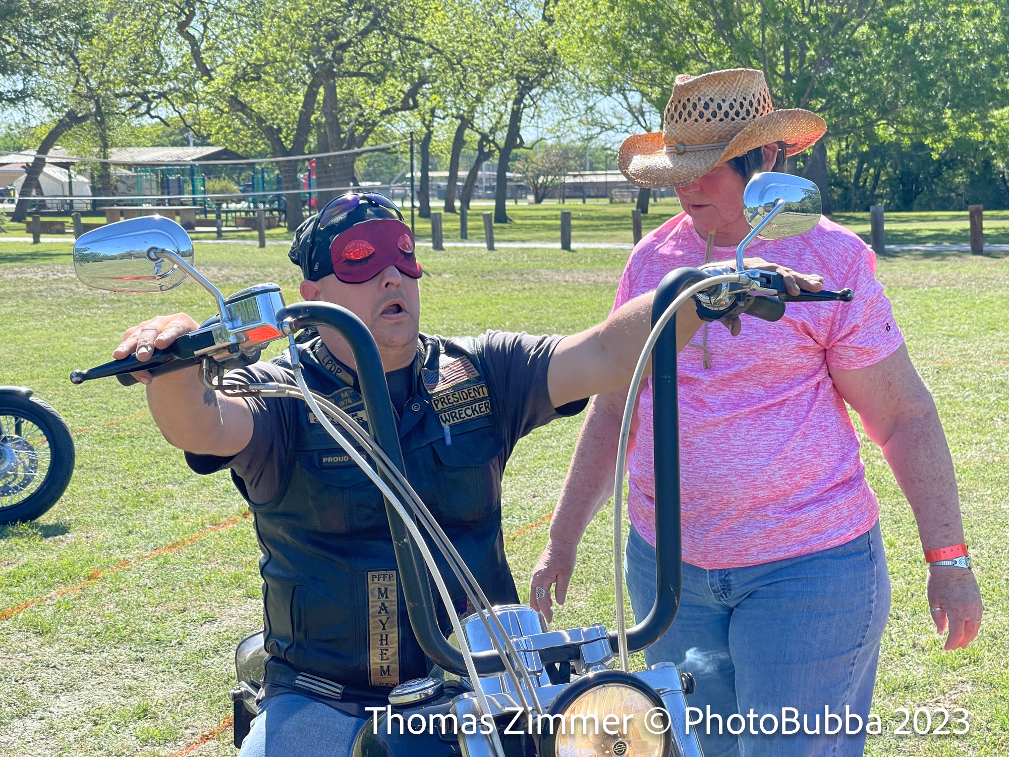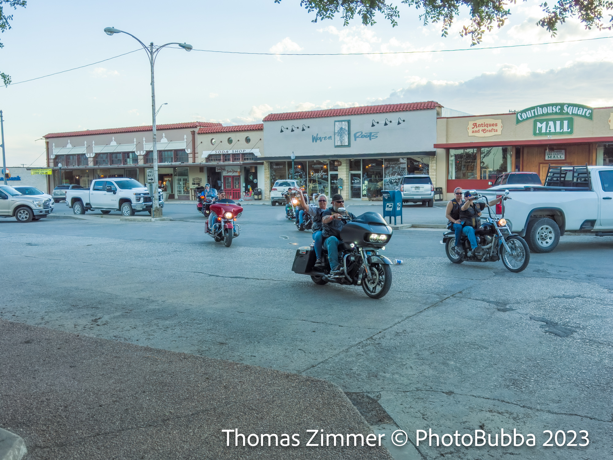 We headed out Friday afternoon for Comanche Texas to attend the 50 year anniversary rally for TMRA (Texas Motorcycle Roadriders Association). It was a bit warm Friday afternoon, but Saturday and Sunday were wonderful. Our fearless leader Jean Hudgins has passed away a few months ago, so I think everyone was still in a bit of a shock, but rally attendance was good, and we had a great time. The rally included the usual components, like the silent auction, the Hobo Stew (no hobos were harmed in the making of this stew), the Bike show, Saturday morning hill country ride, Saturday afternoon bike games, including one bike spill. Fortunately no-one was injured, and the lucky (lucky?) fellow won first price in the blindfolded bike ride because he crashed right on top of the target cone Amazing!. We also had some great tunes Saturday evening after the awards ceremony, and got to talk with old friends and go to dinner of course. Sunday Don Potter held a short memorial for Jean, followed by a great sermon and music. I got lots of pictures, including one of the bike spill, but unfortunately no video of that part. I did get video of the Bike Parade, the Memorial, and the service Sunday morning which are posted below, followed by the photos.