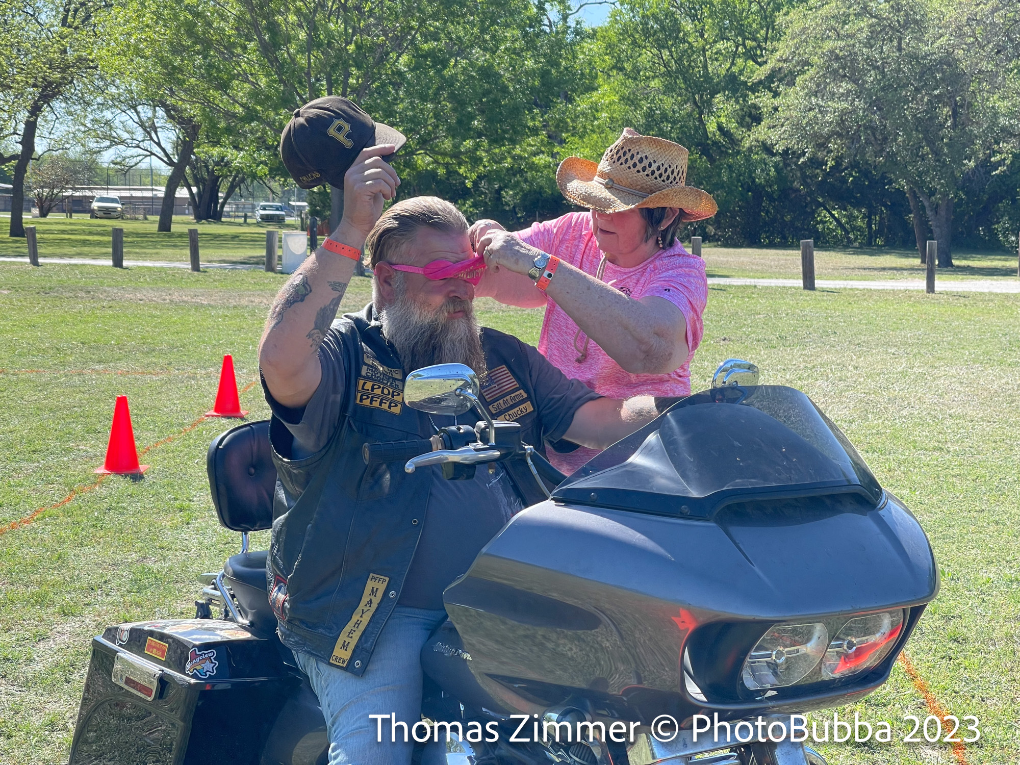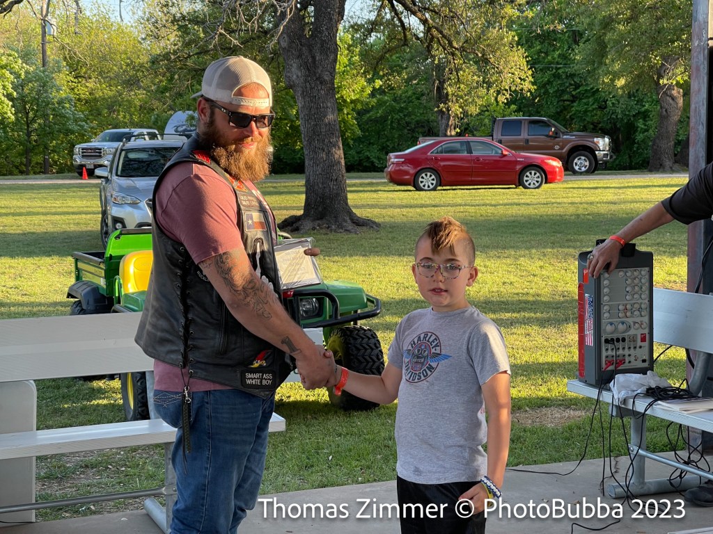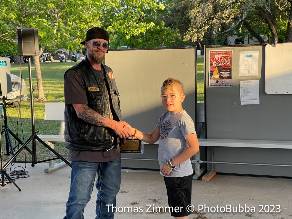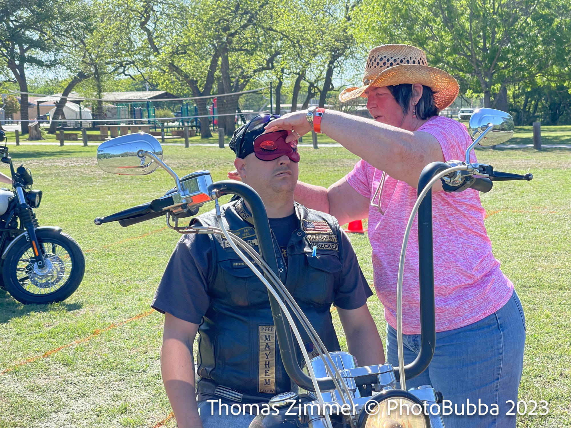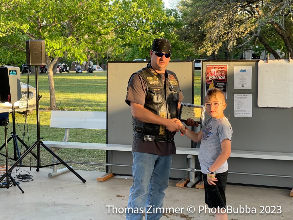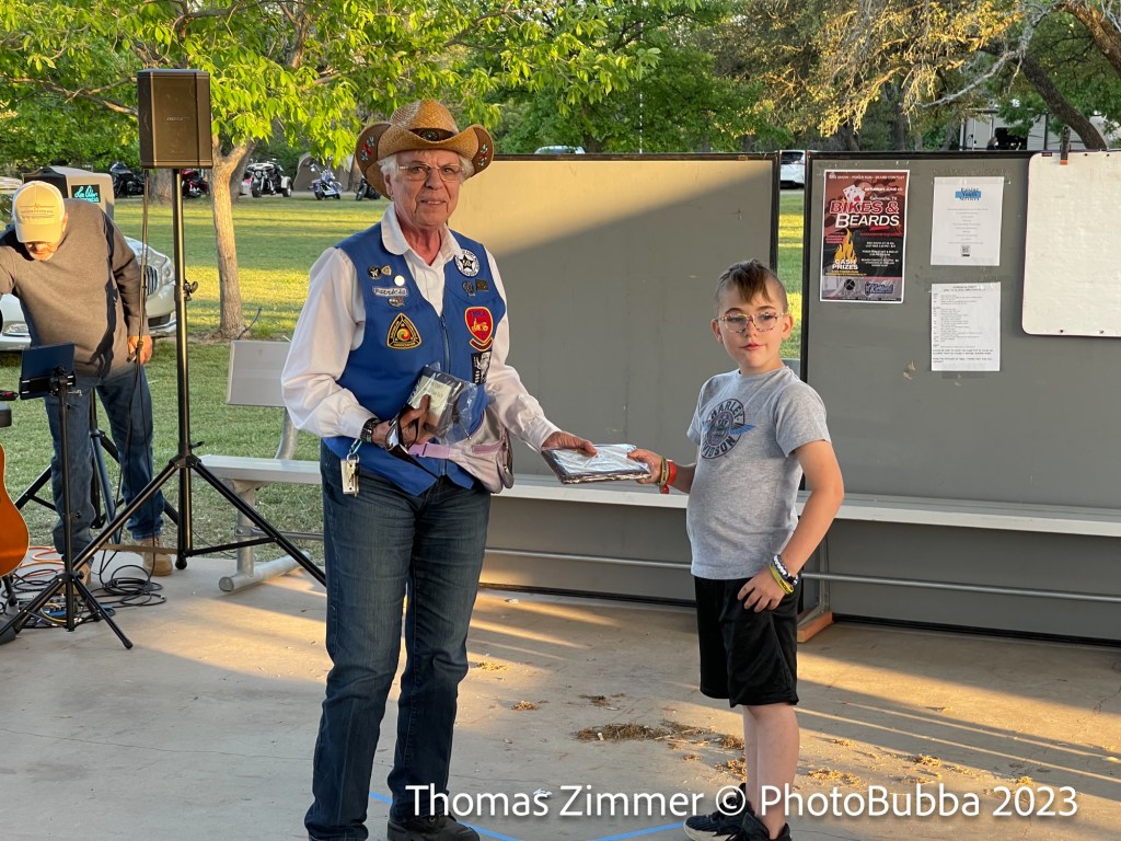 We headed out Friday afternoon for Comanche Texas to attend the 50 year anniversary rally for TMRA (Texas Motorcycle Roadriders Association). It was a bit warm Friday afternoon, but Saturday and Sunday were wonderful. Our fearless leader Jean Hudgins has passed away a few months ago, so I think everyone was still in a bit of a shock, but rally attendance was good, and we had a great time. The rally included the usual components, like the silent auction, the Hobo Stew (no hobos were harmed in the making of this stew), the Bike show, Saturday morning hill country ride, Saturday afternoon bike games, including one bike spill. Fortunately no-one was injured, and the lucky (lucky?) fellow won first price in the blindfolded bike ride because he crashed right on top of the target cone Amazing!. We also had some great tunes Saturday evening after the awards ceremony, and got to talk with old friends and go to dinner of course. Sunday Don Potter held a short memorial for Jean, followed by a great sermon and music. I got lots of pictures, including one of the bike spill, but unfortunately no video of that part. I did get video of the Bike Parade, the Memorial, and the service Sunday morning which are posted below, followed by the photos.