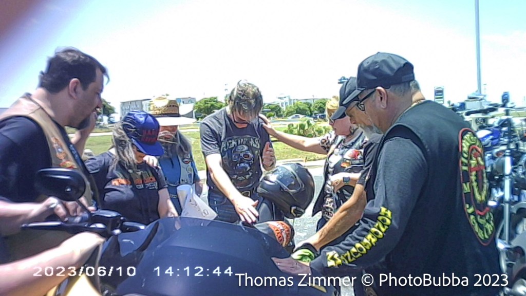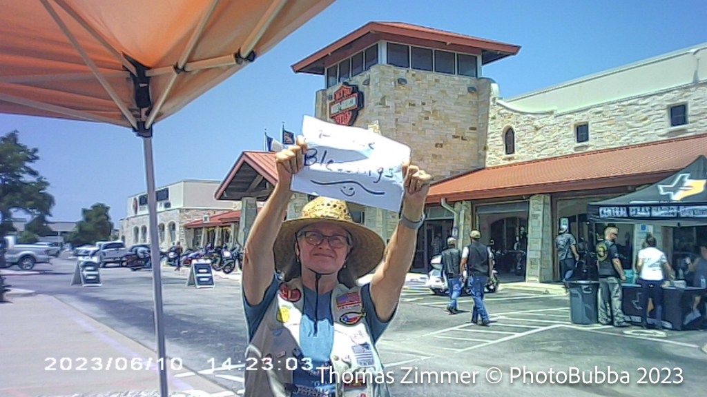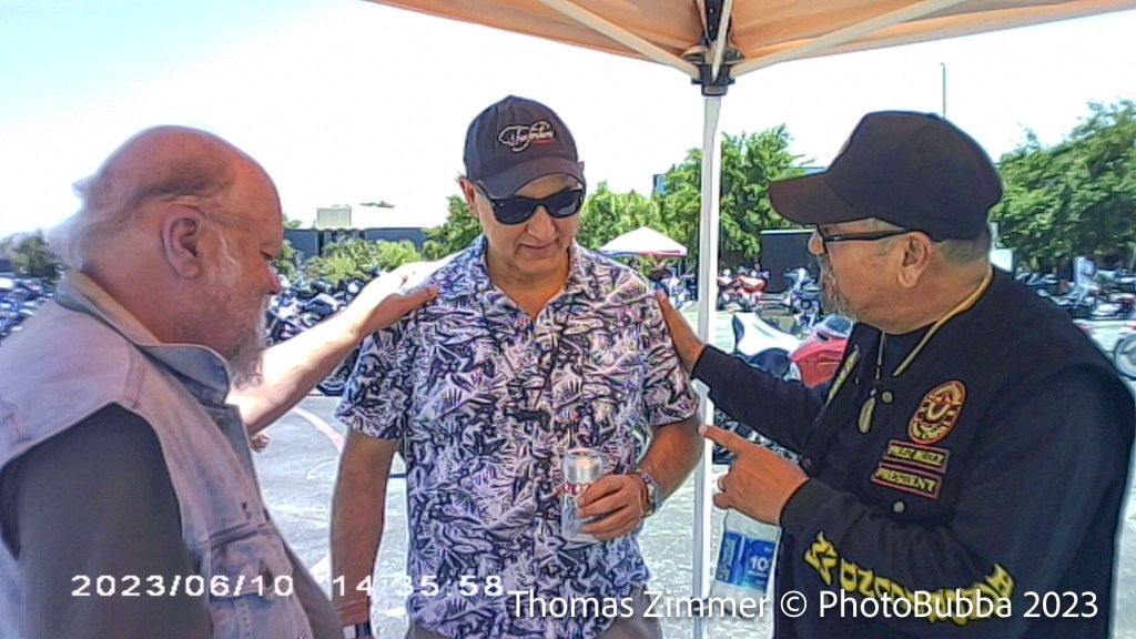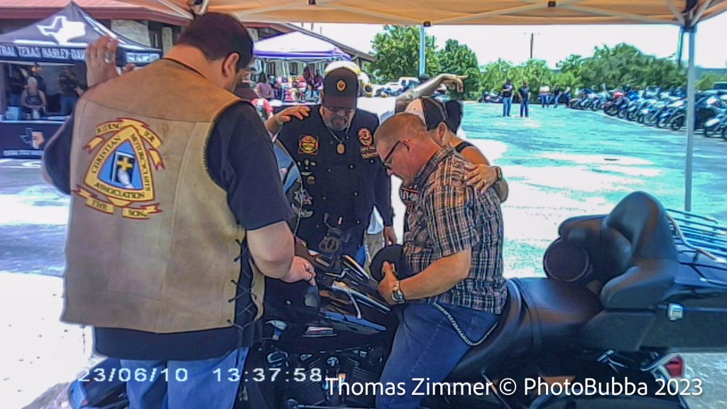 We took a ride (in the car) over to CTHD (Central Texas Harley Davidson) for the Victas Bike Show. The organizers had reached out to Honor Bound MM to provide a bike blessing, and Honor Bound through Cristian Unity reached out to our CMA chapter to come along and bless some bikes. We were happy to do that, so we all met there around noon. Honor Bound provide a nice shady tent so we wound’t get burned up in the 90 plus heat, and fortunately there was also a nice breeze that help cool thing down too. There were vendors, DJ, a Bike Show naturally, not to mention lots of bikes. We just hung out, and blessed bikes. Honor Bound blessed some, and New Life Riders blessed some. It was pretty cool. Oh, and we even blessed a person. He didn’t have a bike, but we were happy to bless him anyway.