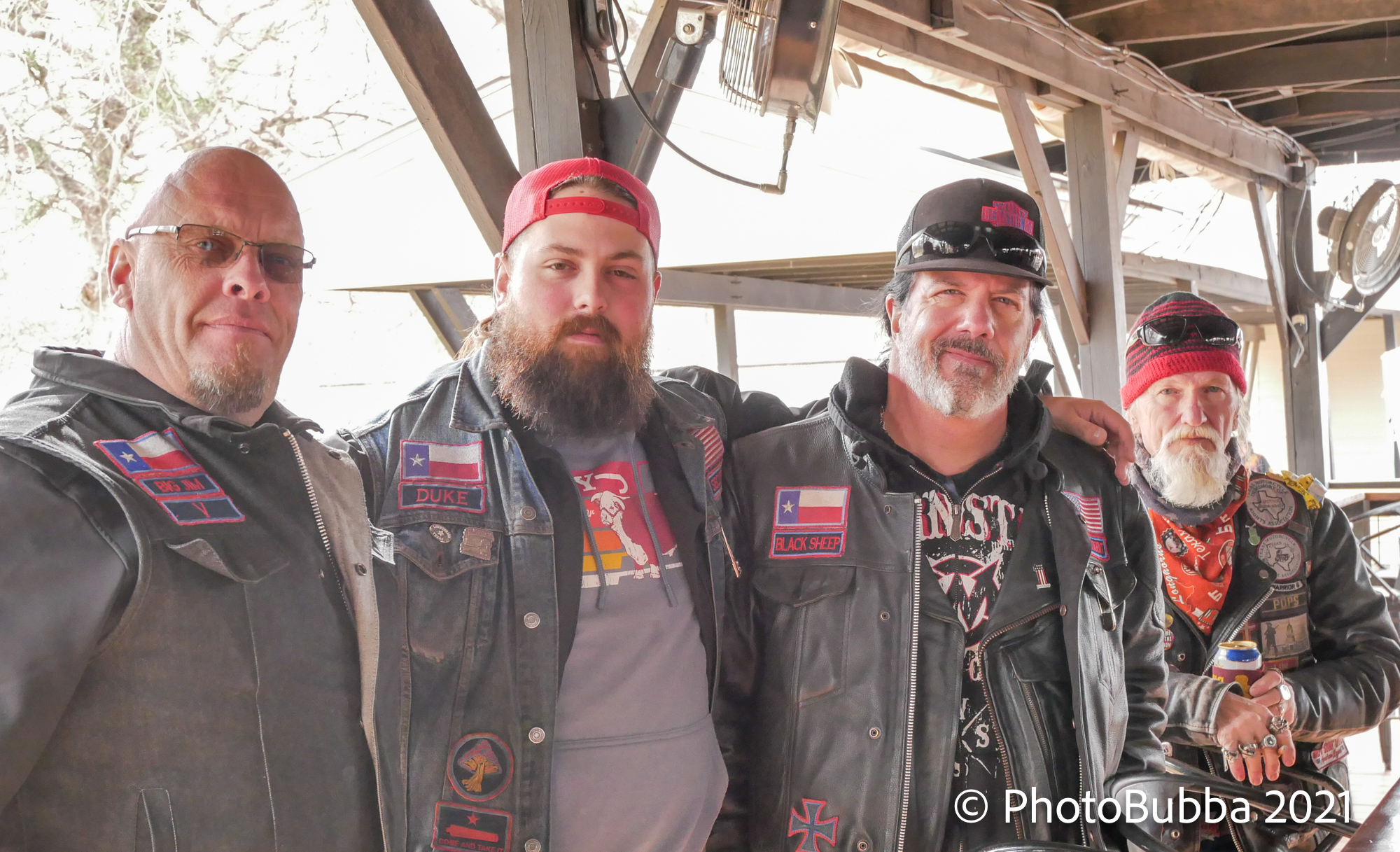As it approached lunch time, I determined to get out of the house. I saw on Facebook that ATC (Austin Texas Chapter) of BMC was having their 54th Anniversary Party. I figured they would have food, so I headed out to Bentwood to get some grubby and to say hello to some friends. When I arrived, there were lots of people there, including many from out of town, so I wandered around and talked to the people I knew before heading over to stand in line with all the red and gold standing in line for some tacos. On receiving my taco I noticed there were several sauces to put on them. I picked the Guacamole salsa, but I should have tasted it first, cause it was pretty hot. I ate it anyway, downing it with my can of Coke, and eventually my mouth cooled off. Next it was off for some more chit chat, and then eventually I headed home for a nap (which I will get as soon as I post this). Just a couple pics today, enjoy!